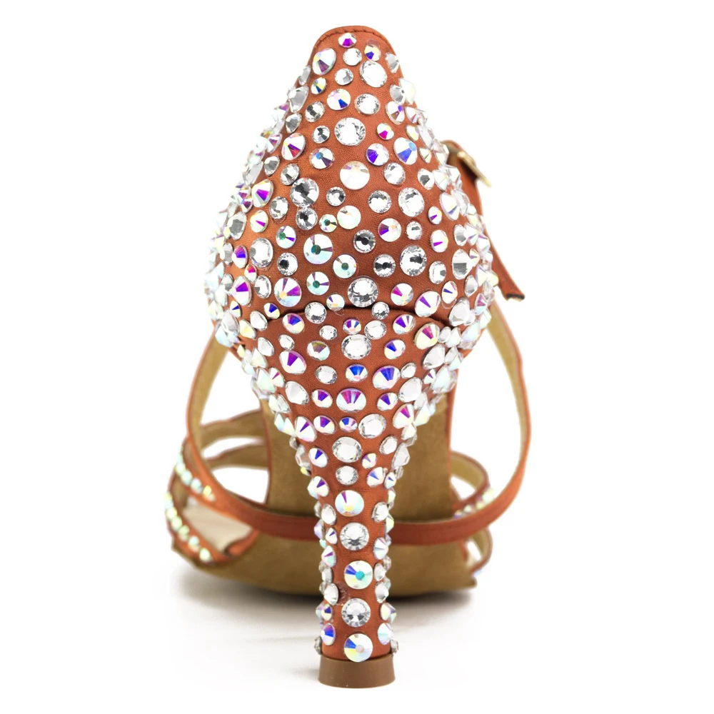 Женские атласные туфли-стразы для танцев, танцевальные туфли для латиноамериканских танцев