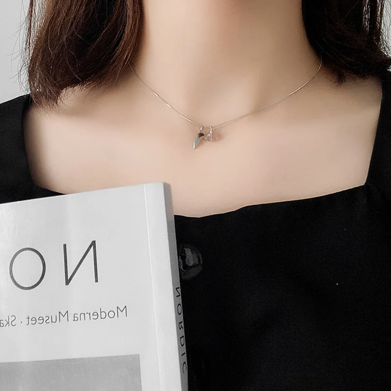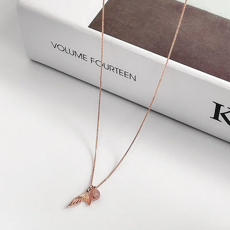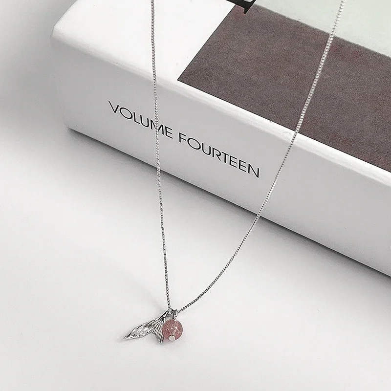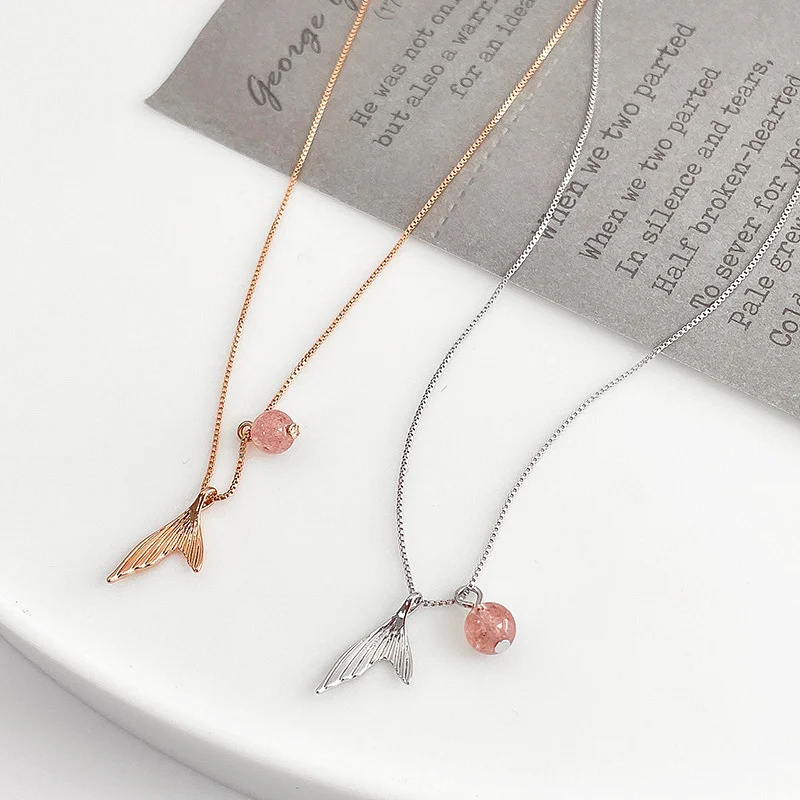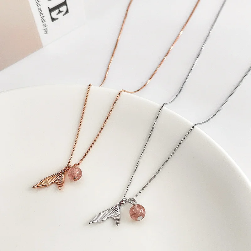 Ожерелье с натуральным камнем, Очаровательная красота, рыбий хвост, Хрустальная цепочка для ключиц, Клубничная подвеска, ожерелье для женщин, трендовые ювелирные изделия