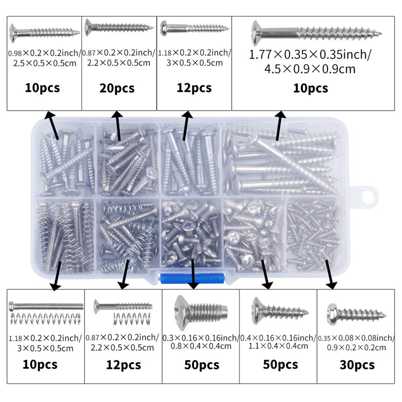 ● Весь комплект включает в себя 9 типов винтов для электрогитары, всего 204 шт.