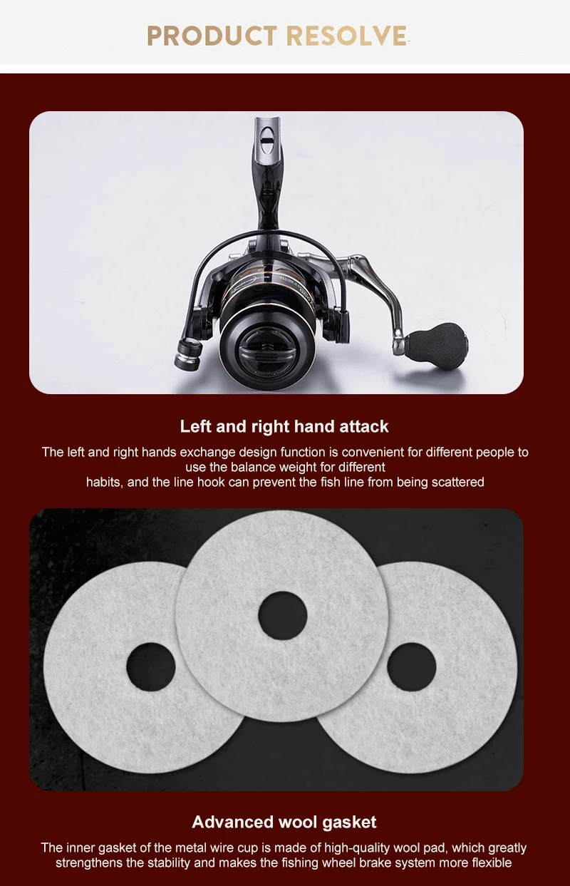 2. Высококачественные шерстяные прокладки: внутренние прокладки для металлической чашки изготовлены из улучшенных шерстяных подушек, что значительно повышает стабильность тормозной системы рыболовных катушек для более гибкой работы.
