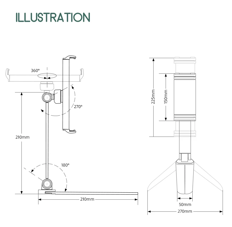 【Стабильный и регулируемый 】: подставка с двумя валами, легко регулируется по шее и основанию (оба угла поворота на 180 °), обеспечивает несколько углов обзора и высоты. Складная конструкция позволяет полностью освободить руки и носить их с собой во время путешествий.