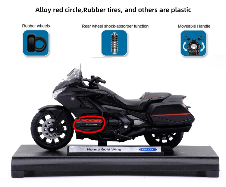 Welly 1/18 2020 Honda Gold Wing литье под давлением модель мотоцикла работоспособная короткошерстная игрушка-поглотитель для детей подарочная коллекция игрушек