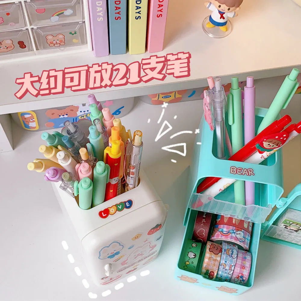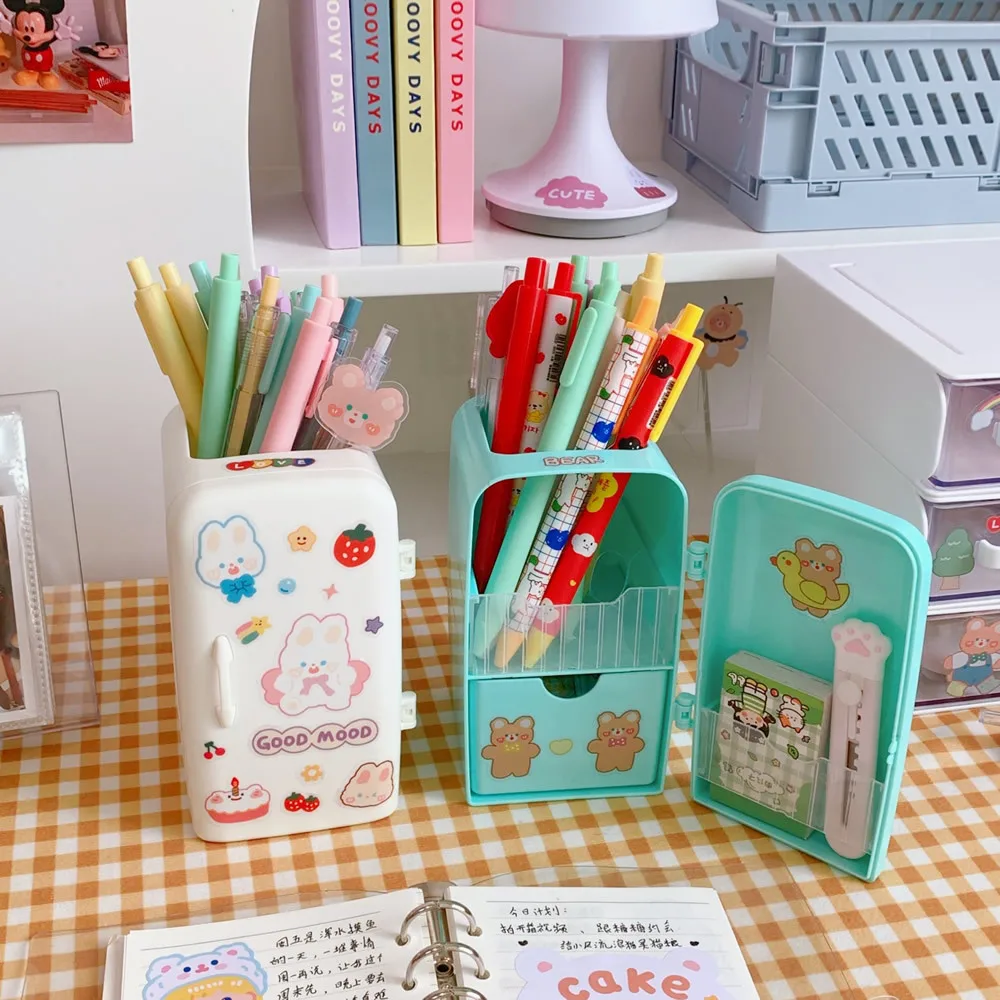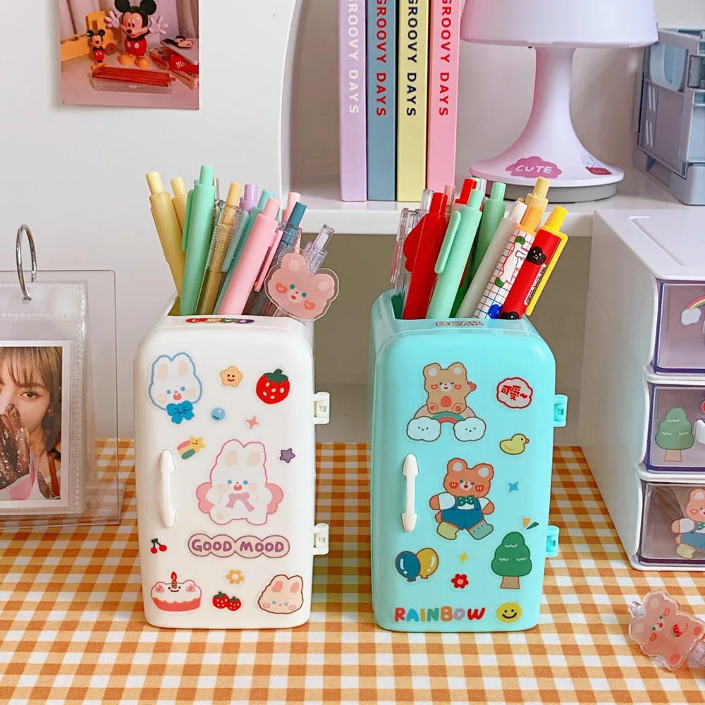 Милый мультяшный держатель для ручки в виде холодильника, большая емкость, Настольный ящик для хранения, органайзер, Канцтовары Kawaii, многофункциональный чехол-карандаш