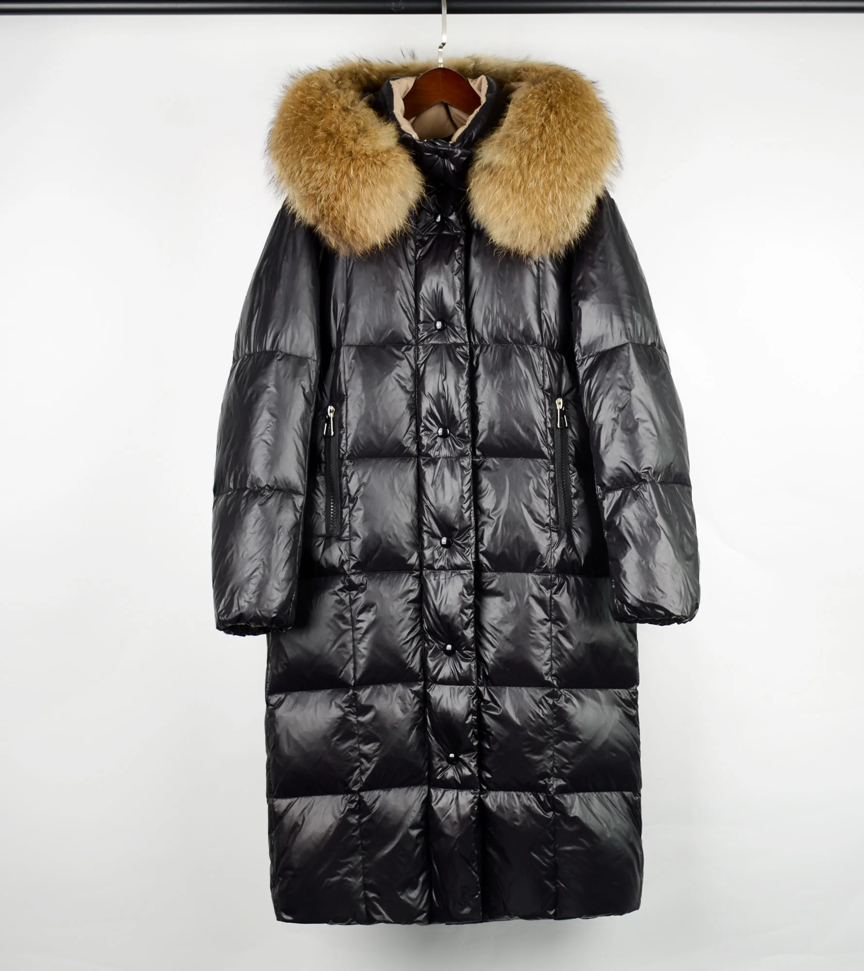 Большой воротник из натурального меха енота