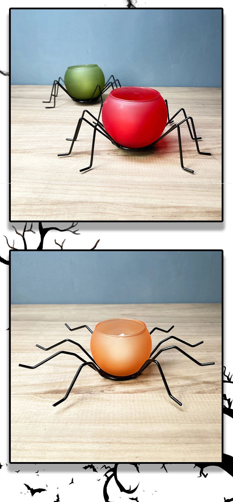 Восьмиугольный паук подсвечник-изготовлен из металлического основания и стекла подсвечник. Светильник, легкий в переноске, прочный и долговечный, подходит для длительного использования
