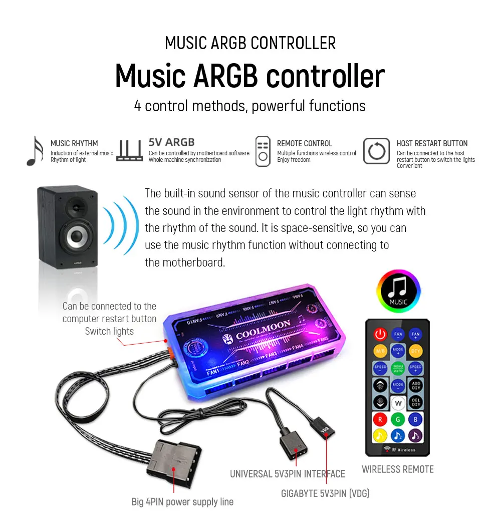Не поддерживает материнскую плату AURA SYNC, не поддерживает изменение цвета музыкального датчика.