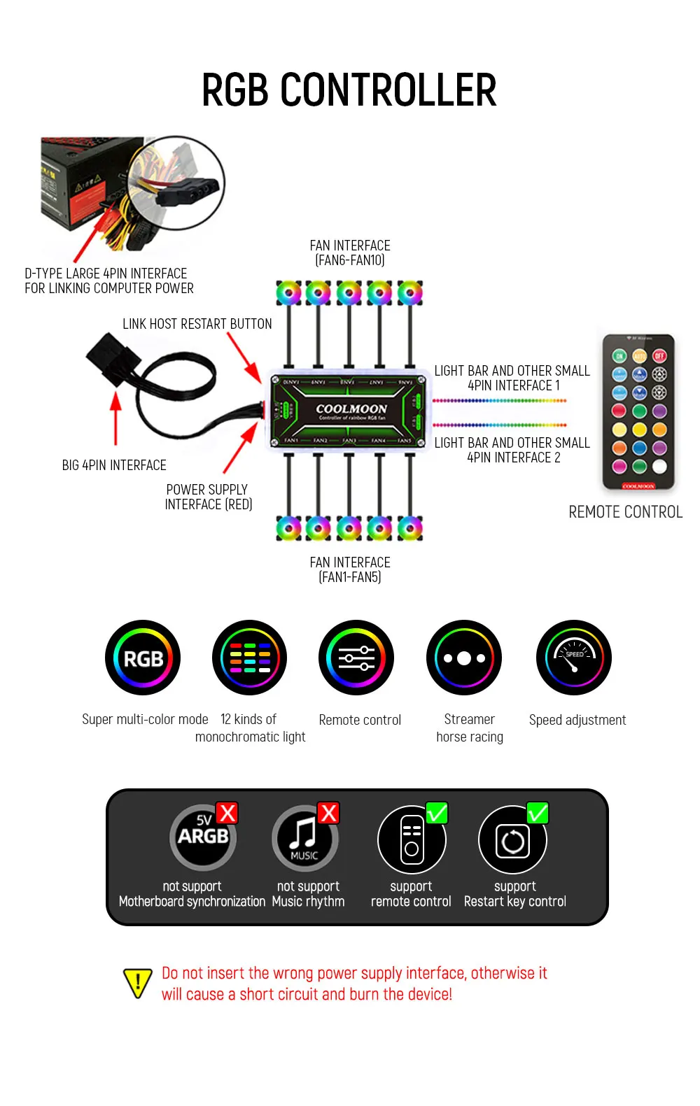 Один вентилятор нельзя использовать, его необходимо использовать с контроллером Coolmoon.