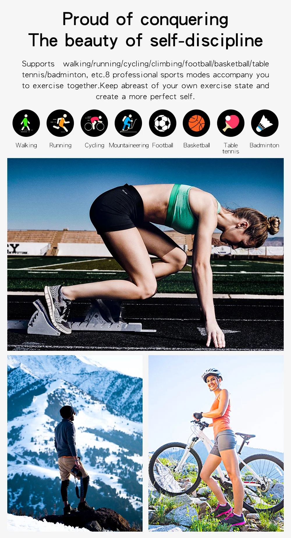 Ходьба/бег/Езда на велосипеде/катание на лыжах/баскетбольные мячи/настольный теннис/бадминтон и т. д. 8 профессиональных спортивных режимов сопровождают вас к тренировкам вместе, будьте в курсе своего собственного состояния упражнений и создайте более совершенное себя.