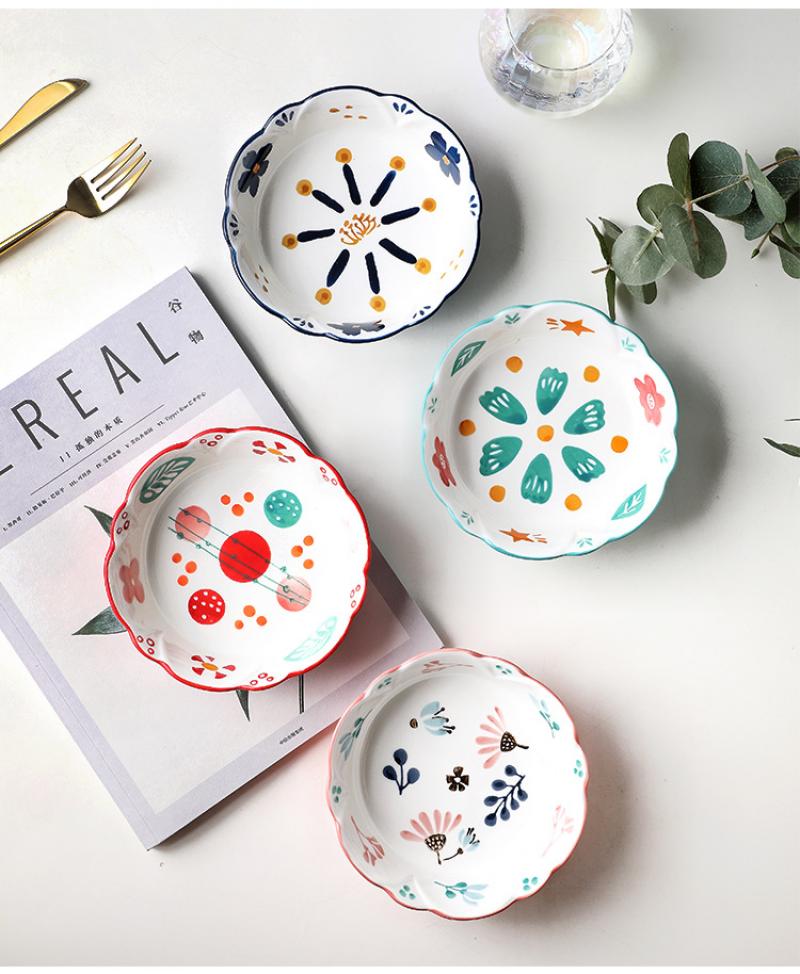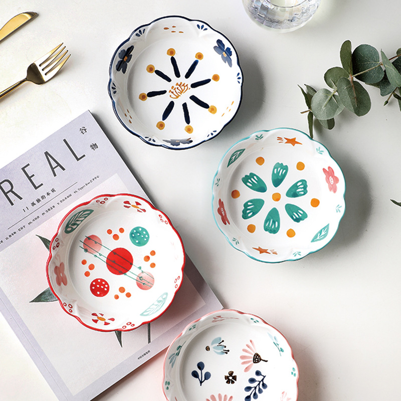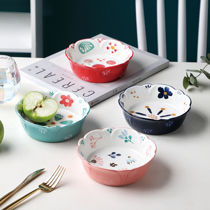 320ml Japanese-Style Underglaze Hand-Painted 6-Inch Fruit Salad Breakfast Noodle Bowls Creative Personality Household Ins Bowls Specification: Length 145x Width 48mm