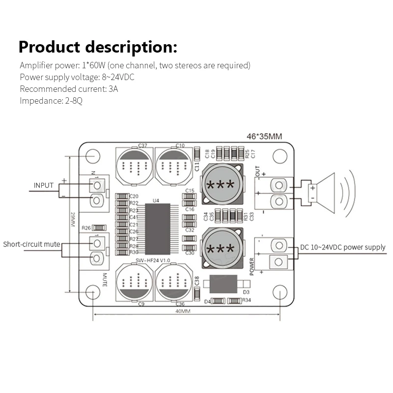 Размер платы PCB: 45*35 мм/1,77 * 1.4in;
