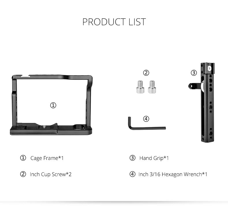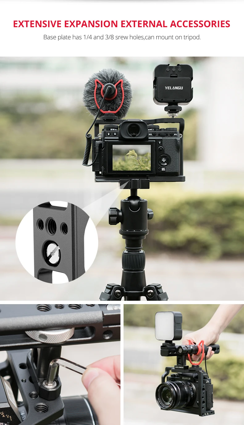 * Оснащен многочисленными резьбовыми отверстиями 1/4 дюйма и 3/8 дюйма для крепления аксессуаров для фотосъемки, таких как верхняя ручка, монитор, последующий фокус и т. д.