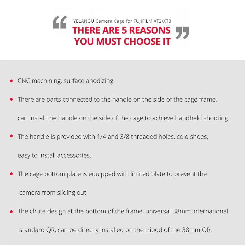 * Прочный корпус камеры из алюминиевого сплава для камеры FUJIFILM XT2/XT3 и с верхней ручкой для съемки под низким углом/динамическим углом.
