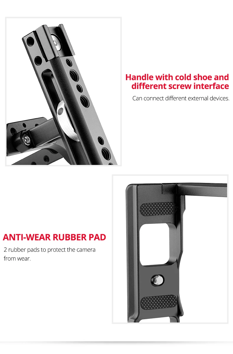 Разработан с креплением для холодной обуви для установки мини-светодиодный светильник или микрофон, чтобы сделать вашу съемку более профессиональной.