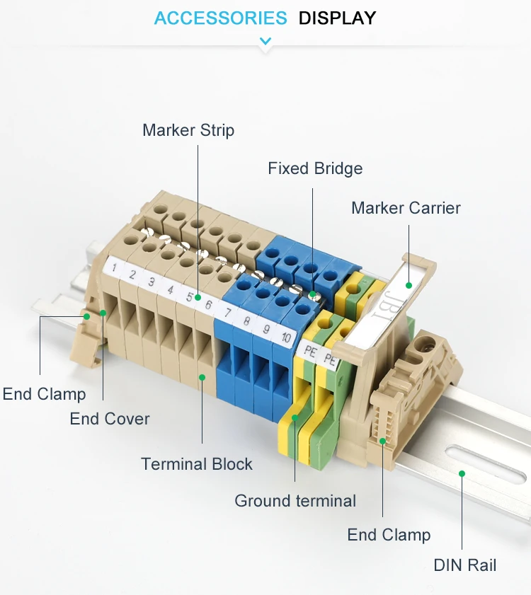 Концевые зажимы SAK крепятся с помощью винтов или просто крепятся на din-рейку.