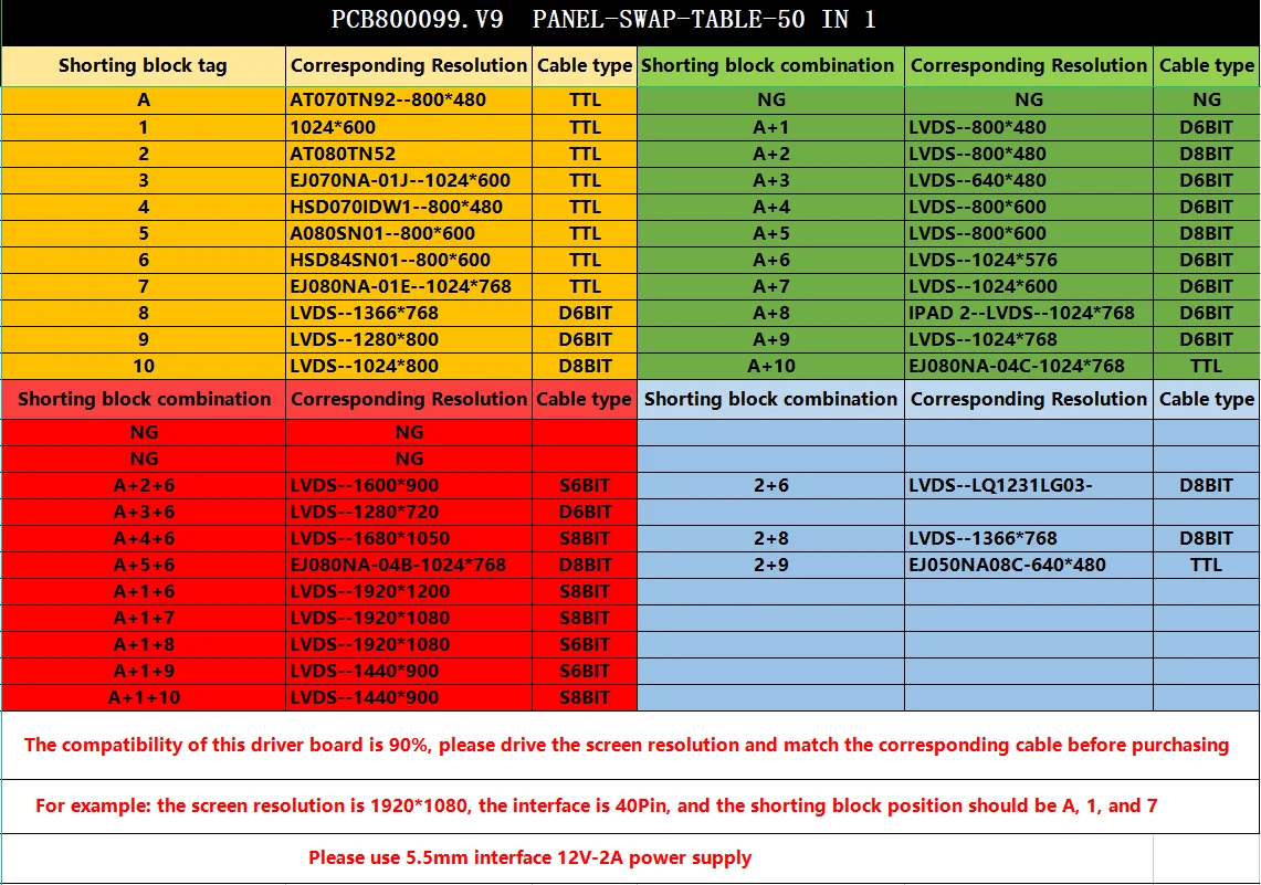 Highly Compatible Universal TFT TN IPS LCD Screen Display HDMI VGA AV Driver Control Board 30Pin/40Pin LVDS EDP TTL