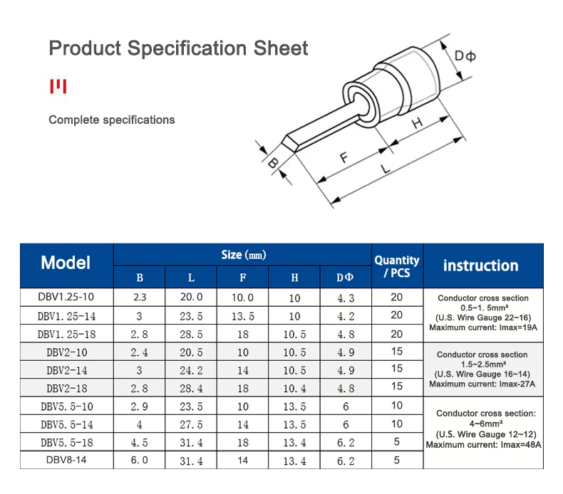 Смешанный DBV лист Предварительно изолированный терминал проводки 0,5-10 квадратный воздушный переключатель вставной холодный прессованный конец медный носик коробка