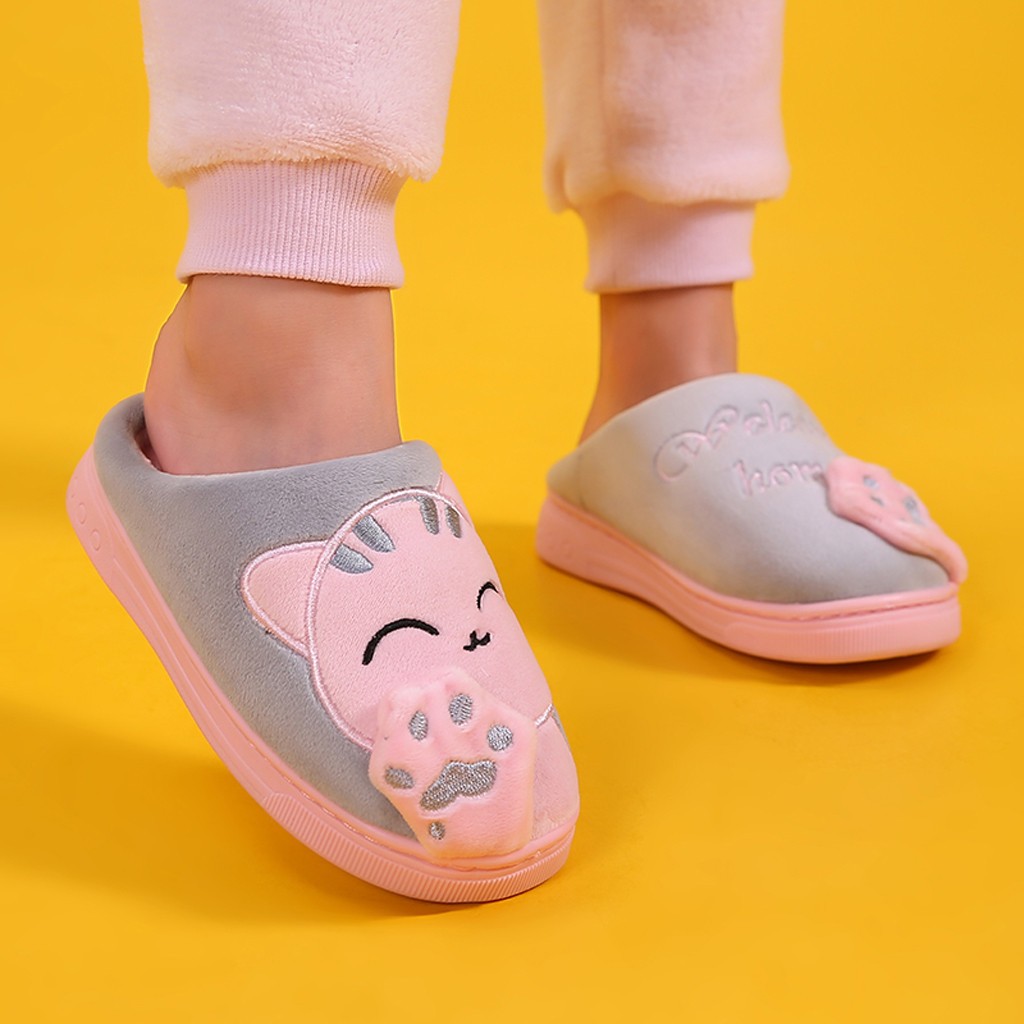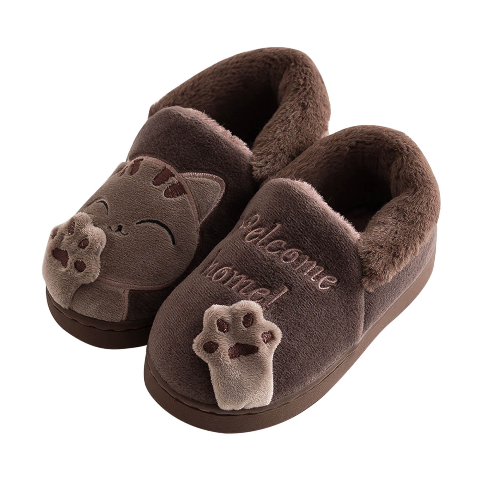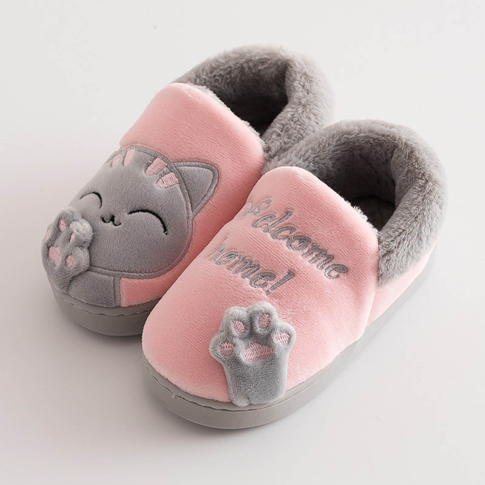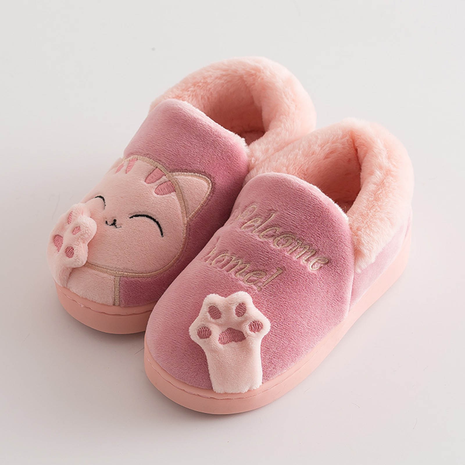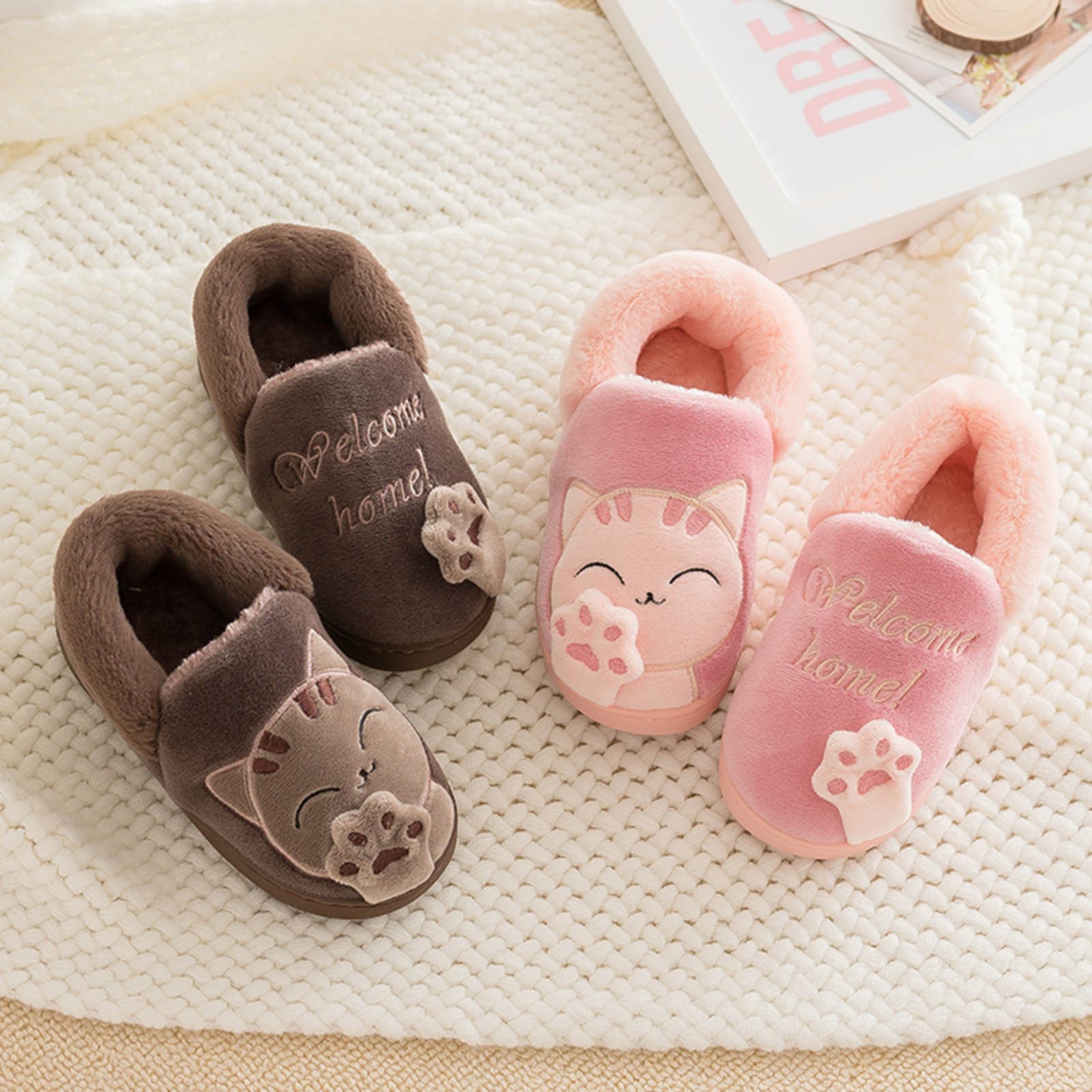 Зимние тапочки для маленьких мальчиков и девочек; Нескользящие тапочки с рисунком котаДля домаОбувь для помещений