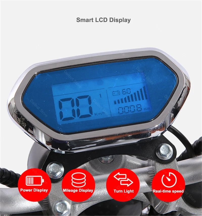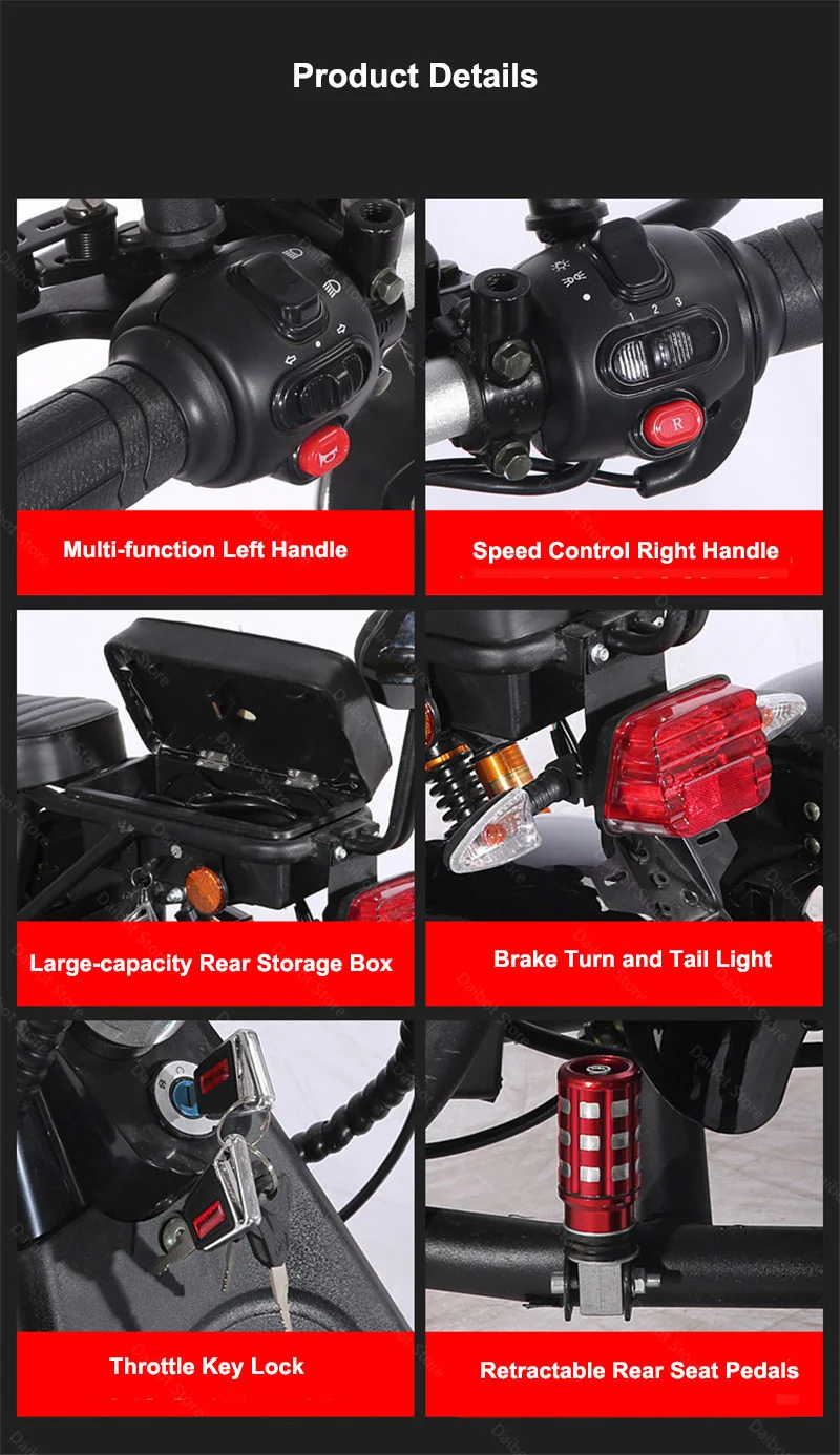 Цвет: черныйДвигатель:2000WЕмкость батареи: 20AHМаксимальный диапазон: около 35-40Км(В зависимости от веса водителя, скорости, эксплуатационного мастерства,Дорожное состояние и погода. Наш тест был сделан водителем весом 55 кг на ровной и гладкой дороге.)Максимальная скорость: около45км/чНапряжение:60VВремя зарядки: около 4-6 чМаксимальная нагрузка: около 200 кгУгол скалолазания: 30 °Вес нетто: около 55 кгКомплектация: электрический скутер, зарядное устройство, EEC бумага внутри коробки.Особенности:Передняя и задняя гидравлическая Дисковая тормозная система, передняя и задняя амортизаторная система подвески, умный ЖК-дисплей, светодиодные фары/поворотники/задние поворотники/зеркало заднего вида,Съемный аккумулятор.