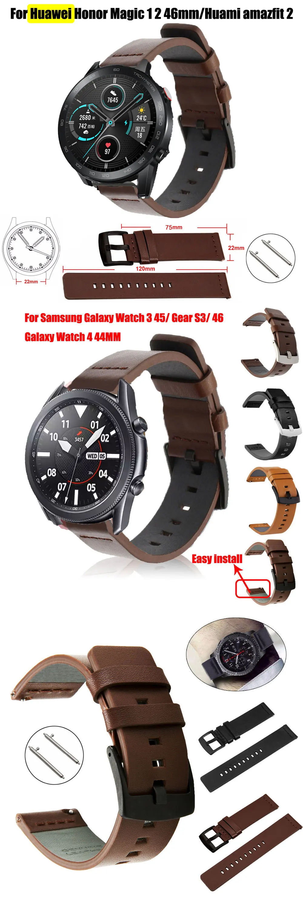 Ремешок для часов 22 мм из натуральной кожи для Huawei Honor Magic 1 2