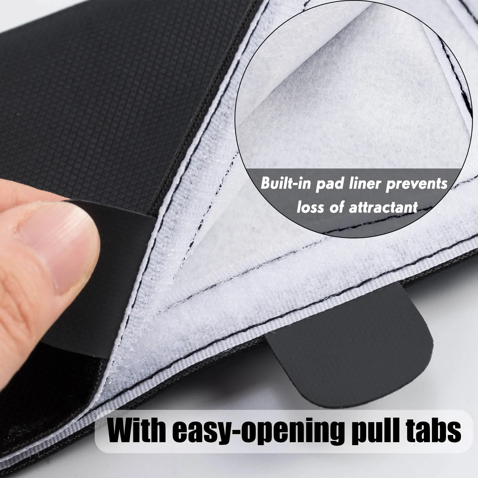 Гибкий и более защитный.Мягкая, но толстая подкладка из встроенного пуха стирает царапины на крышке, предотвращает торчащие точки крючка, что самое главное, предотвращает потерю аттрактанта для ароматной приманки.