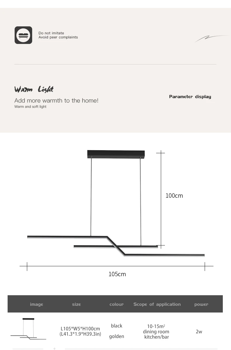 Современный длинный подвесной светильник, Led домашний простой светильник для кухни, островной столовой, чердак, черная золотая линия, офисный магазин, домашний комплект, подвесной светильник