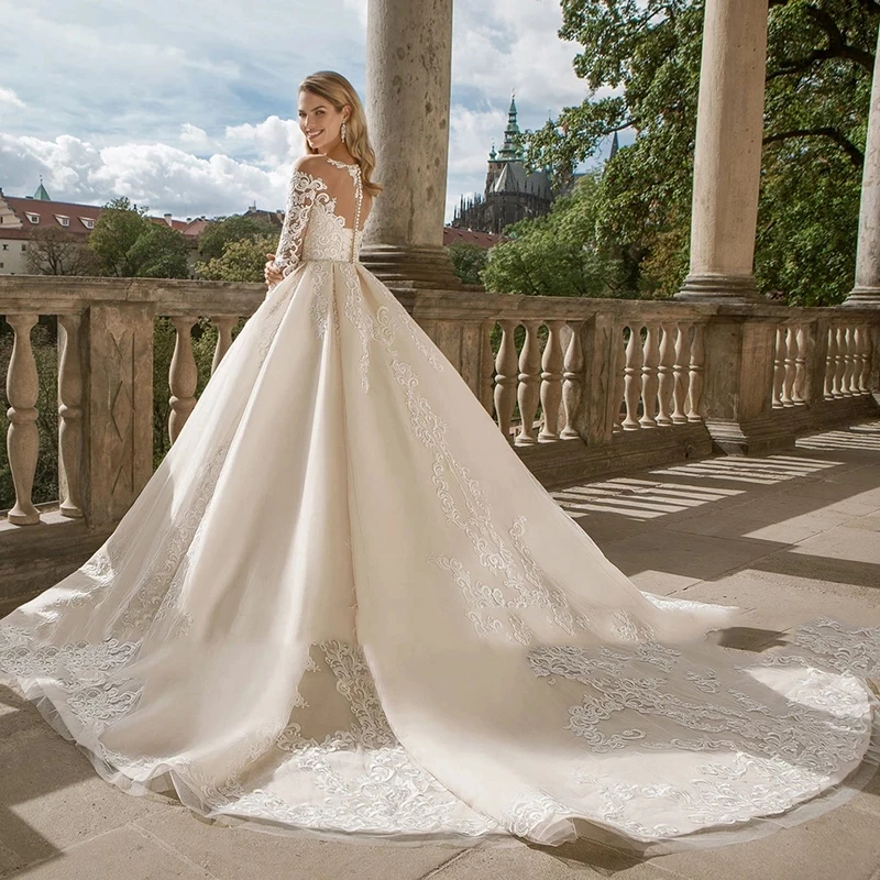 Великолепные, с круглым вырезом, с длинными рукавами, кружева, аппликация, милая, алмаз, пояс, темперамент, разделка пола
