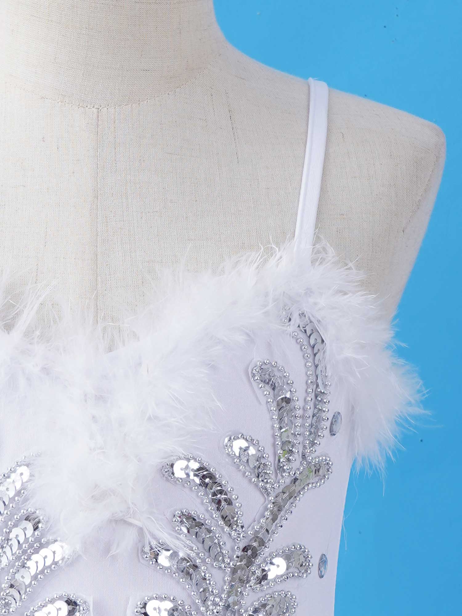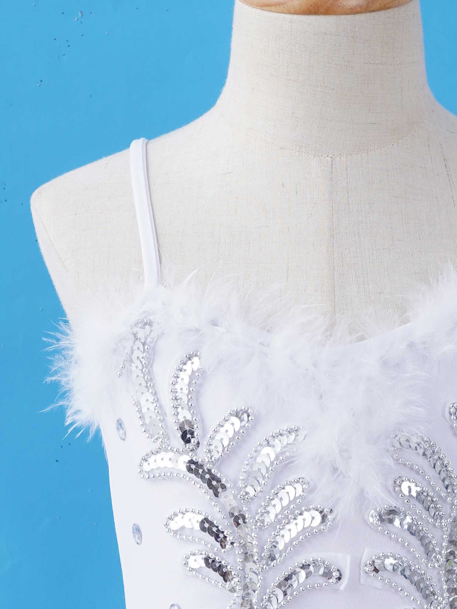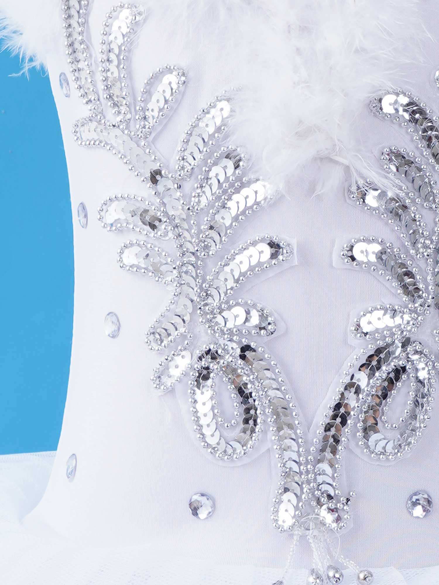 Дизайнерское плюшевое платье с пайетками и перьями, имитация бриллианта спереди, заколка для волос с цветами, сетчатый эластичный браслет и высокие эластичные чулки.