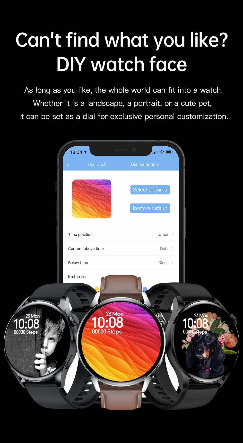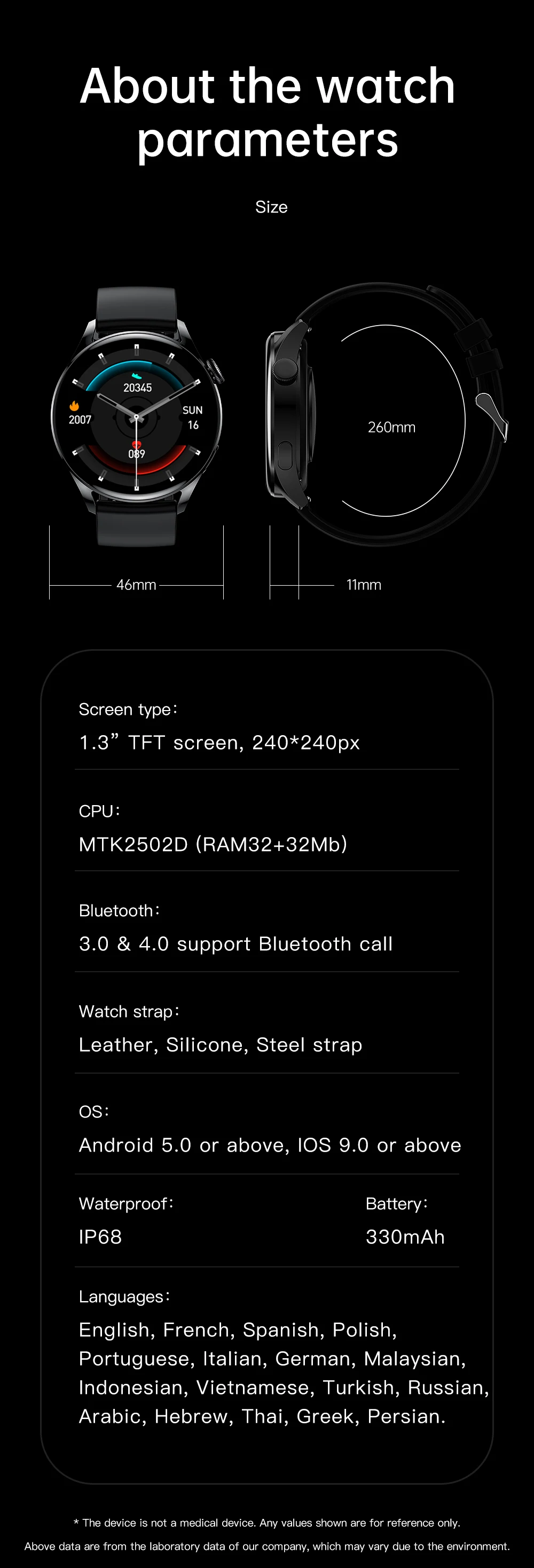 * Дисплей: 1.3 IPS,240*240 Полный Круглый дисплей