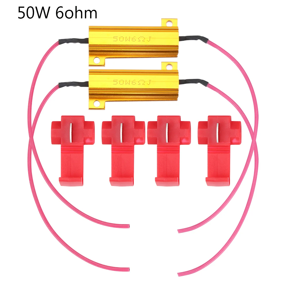 1 шт., 50 Вт, 6 Ом, нагрузочный резистор, фиксирующая Светодиодная лампа, быстрая гипер-вспышка, сигнал поворота, мигающий декодер, резистор с Т-образными кранами, автомобильные кабельные аксессуары