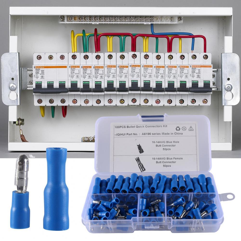 100 шт./компл. 16-14 AWG проводка терминал надежная Отличная проводимость Медь Синий Мужской Женский обжимной разъем для автоматического оборудования