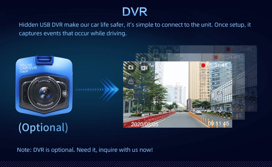 3:Reverse camera/Drive Record DVR From Rear USB: Support