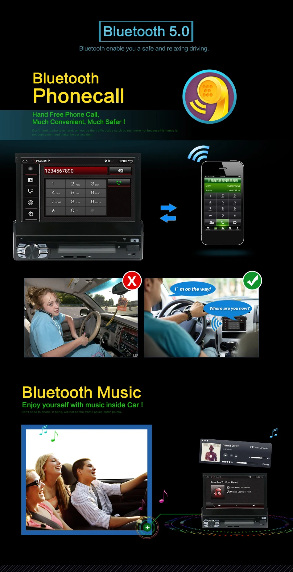 1:Bluetooth for hands free. Bluetooth Phone book Search From "A to Z"
