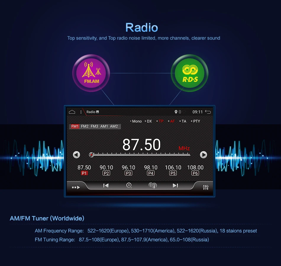 9:Support RDS.FM Frequency: 87.5-108MH AM frequency: 522-1710KHZ