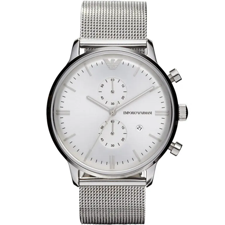 Номер модели AR0390 Диаметр циферблата Диаметр; 42; мм.; толщина; 12; мм Название бренда Emporio Armani 7 Происхождение Китай Механизм QUARTZ Материал корпуса Нержавеющая сталь Тип застежки Застежка для браслета Глубина водонепроницаемости Бар Стиль Модный и повседневный Возможности Нет Форма корпуса Круглый Функции Часы, минуты, секунды, дата, хронограф Тип Мужские Водонепроницаемость WR50 Ремешок Нержавеющая гипоаллергенная сталь Стекло Минеральное, антибликовоевнешний вид товара