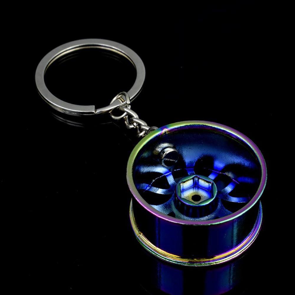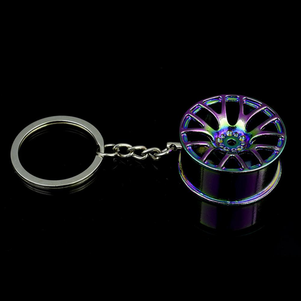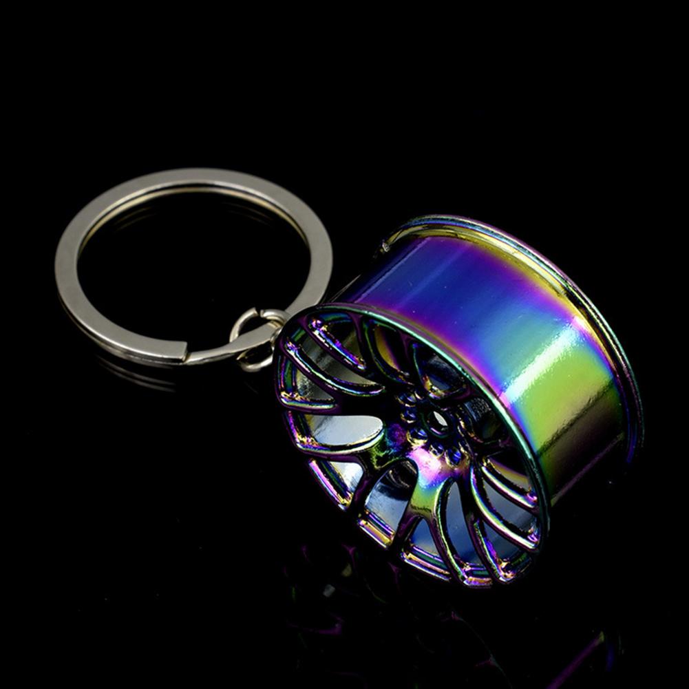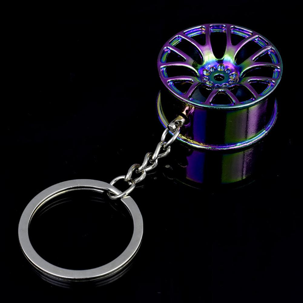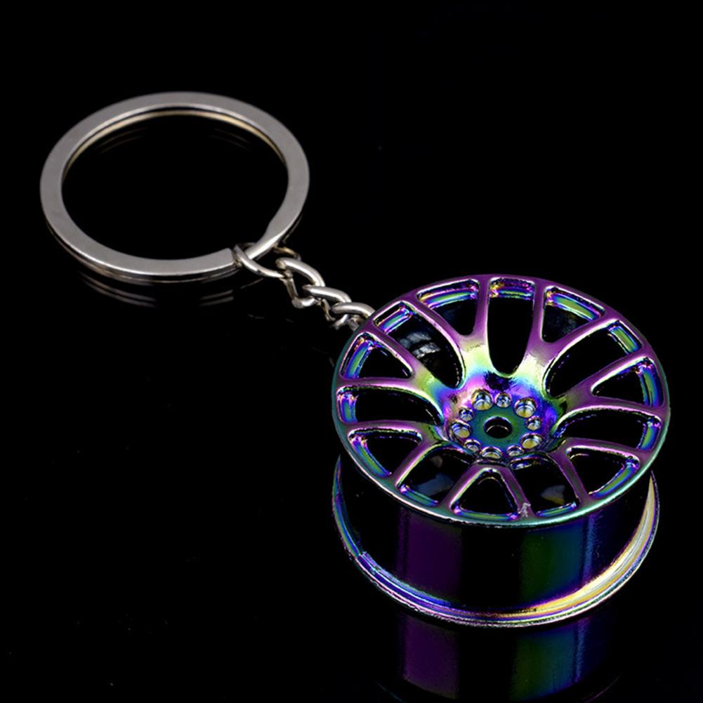 Эта цепочка для ключей имеет форму ступицы колеса, которая имеет красочный внешний вид.