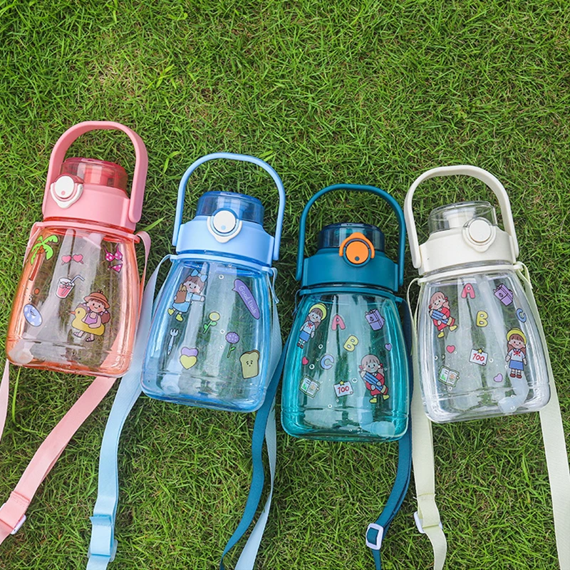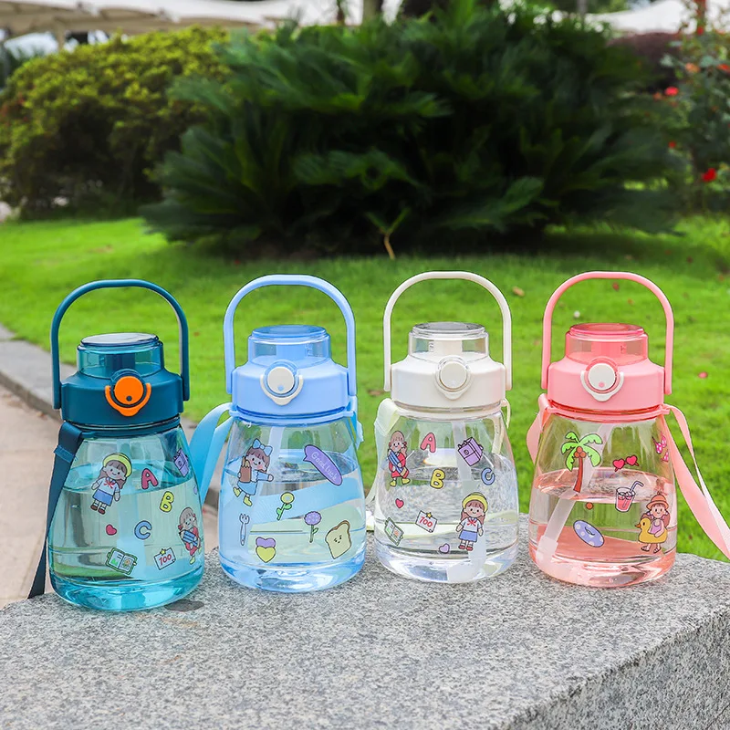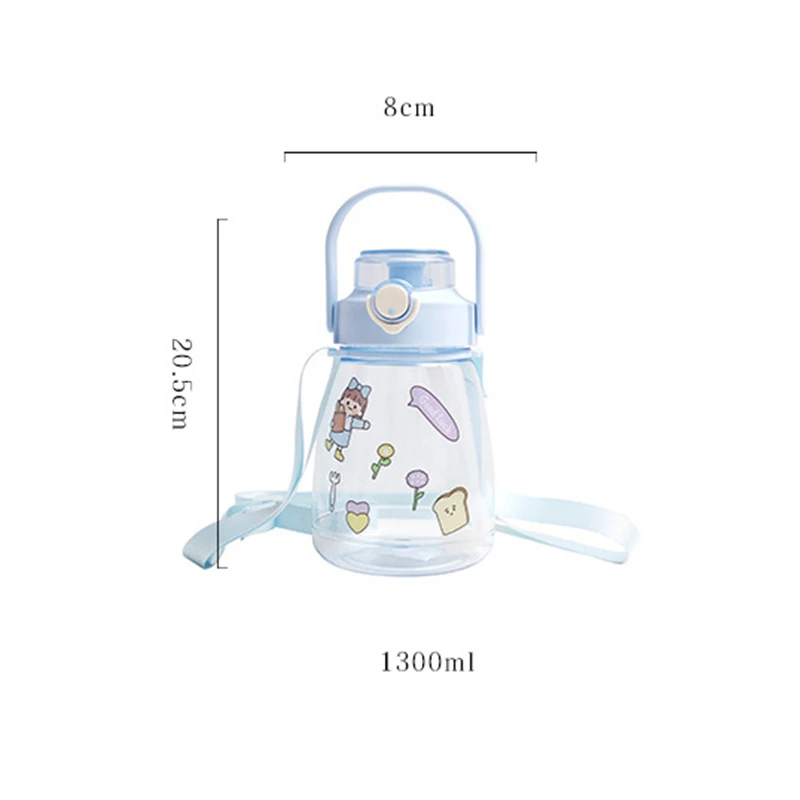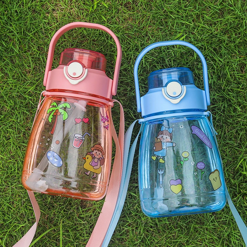 Повседневная Спортивная бутылка для воды с соломой, большая емкость, чашка для воды с большим животом, портативная ручка, ремешок, стикер, пластиковый чайник