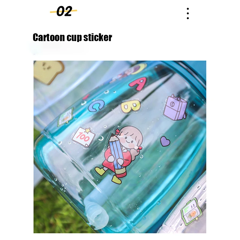 Большая соломенная пластиковая чашка с наклейками и ремешками, пластиковая крышка для чашки и герметичный замок. Мы предоставим Вам набор креативных мультяшных наклеек, чтобы вы могли свободно сделать своими руками ваши любимые чашки. Есть ручка в форме ручки, которая является более модной и удобной. Красочная плетеная веревка может быть скорректирована по длине. Отправляйтесь на прогулку и Принесите свой милый стакан для питья.