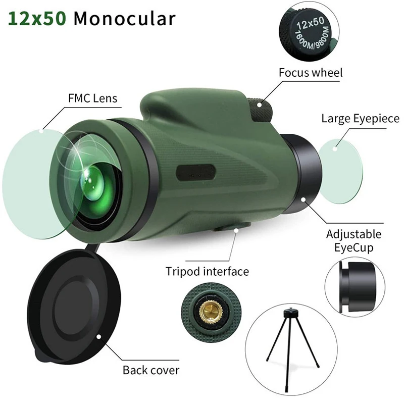 Монокуляр с большим полем обзора 12X50 для улицы, кемпинга, путешествий, охоты, HD FMC, телескоп со штативом мобильный телефон, держатель для наблюдения за птицами