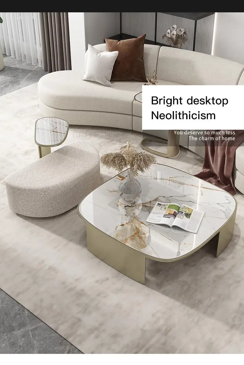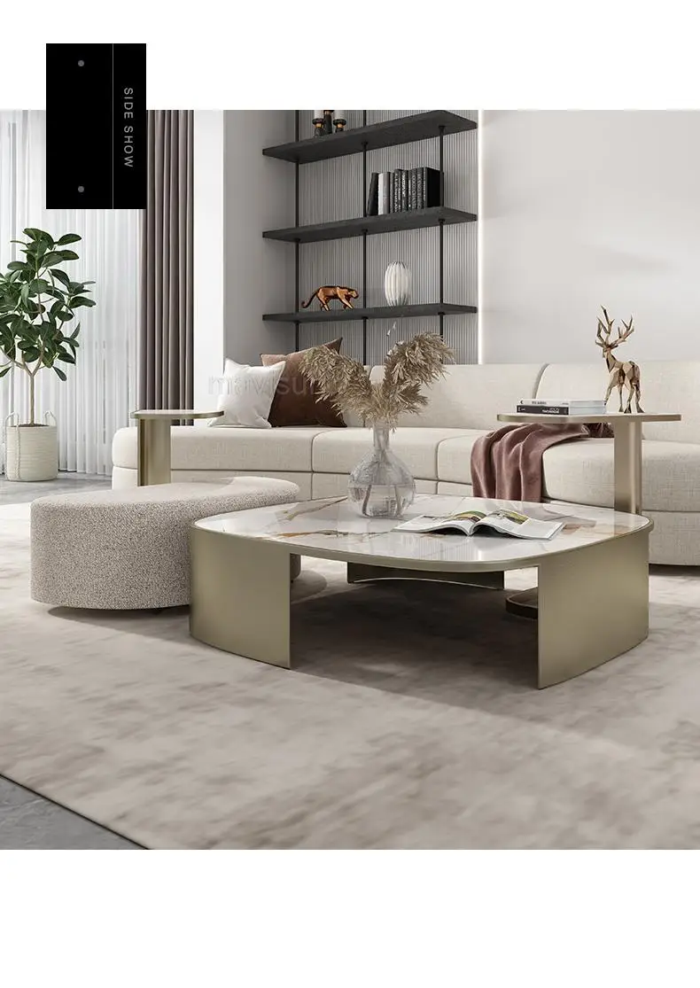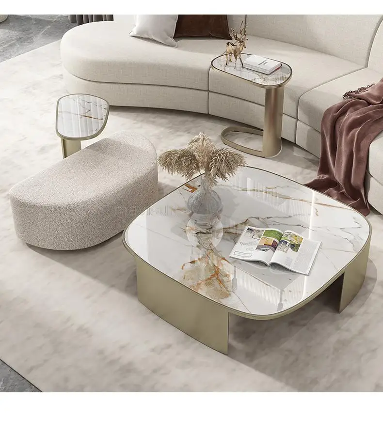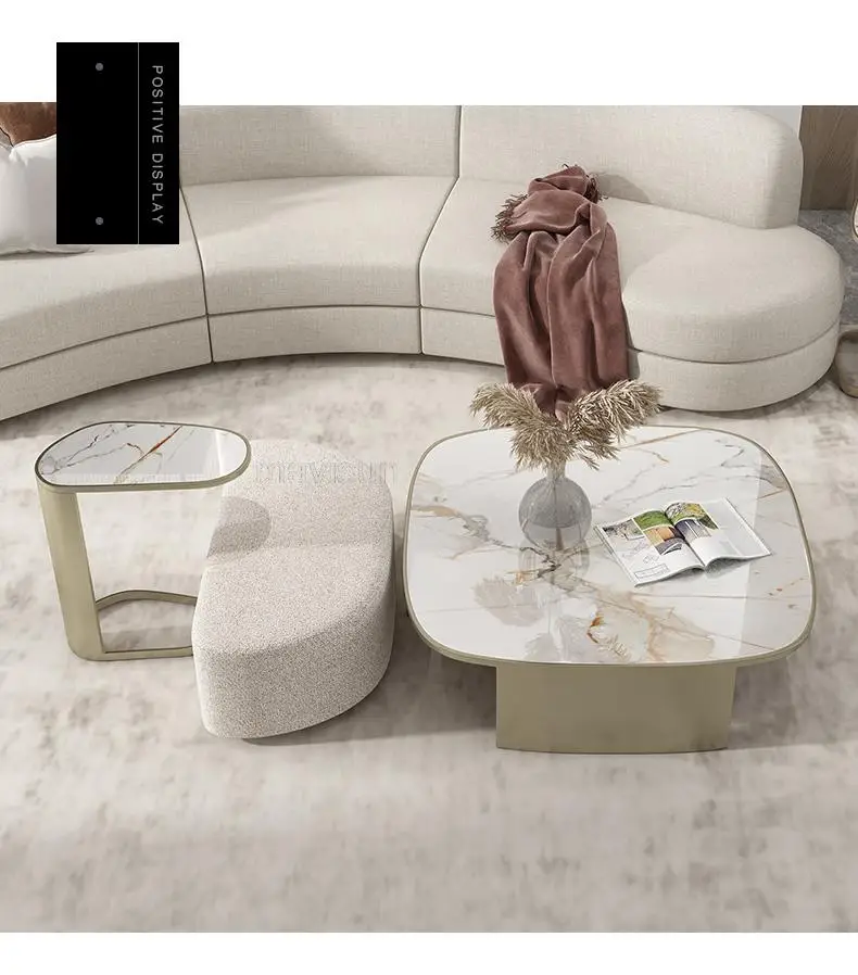 Роскошная маленькая мебель для гостиной с мраморным узором, набор из 3 белых кофе