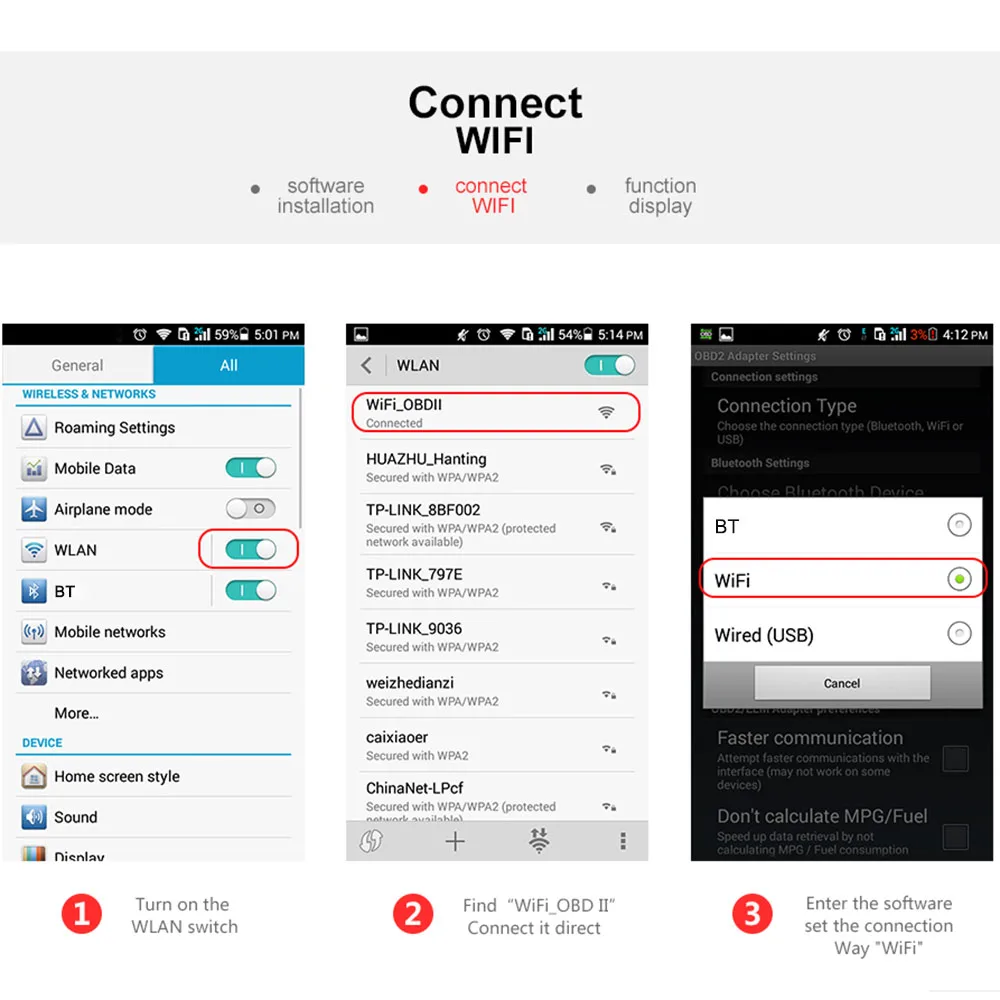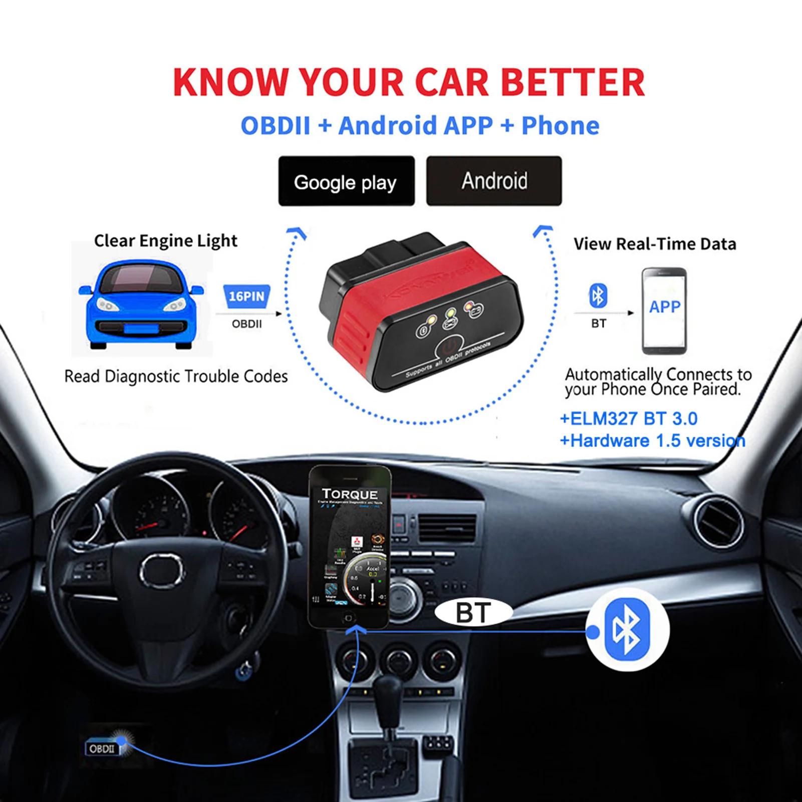 Подключается к Android, Windows PC с соответствующими диагностическими процедурами по BT.