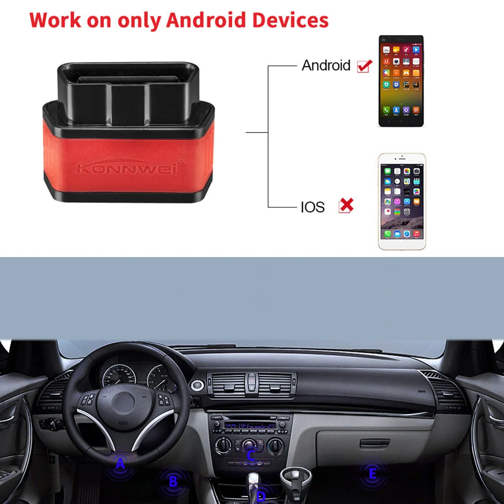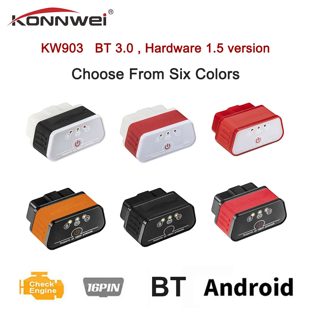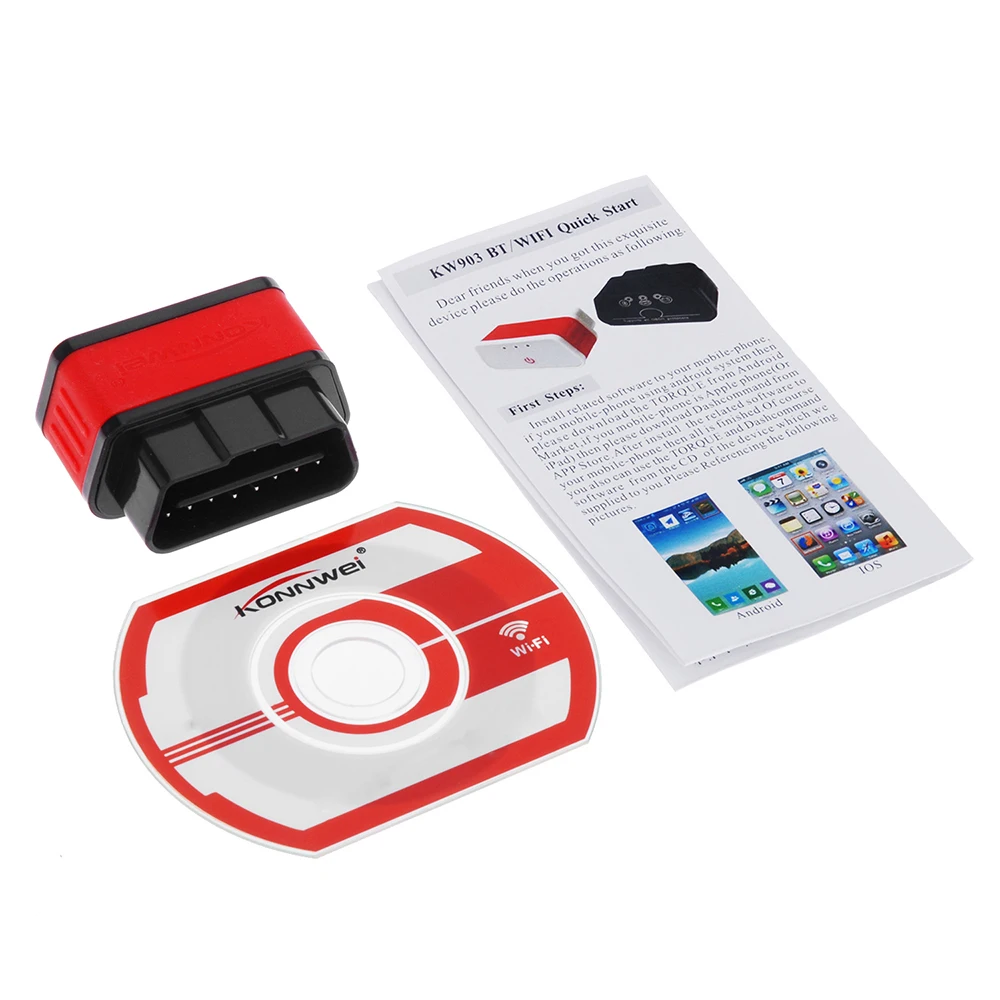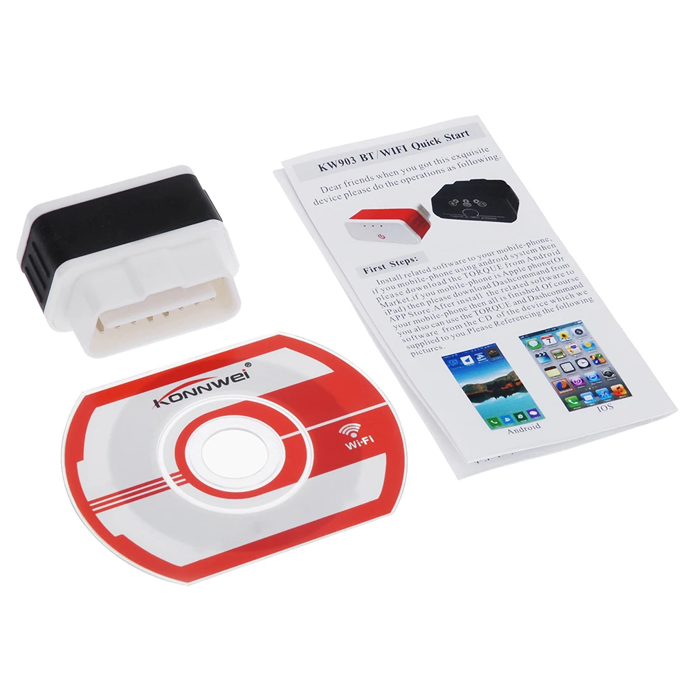 KONNWEI KW903-это небольшой адаптер, который подключается к OBDII-разъему автомобиля.