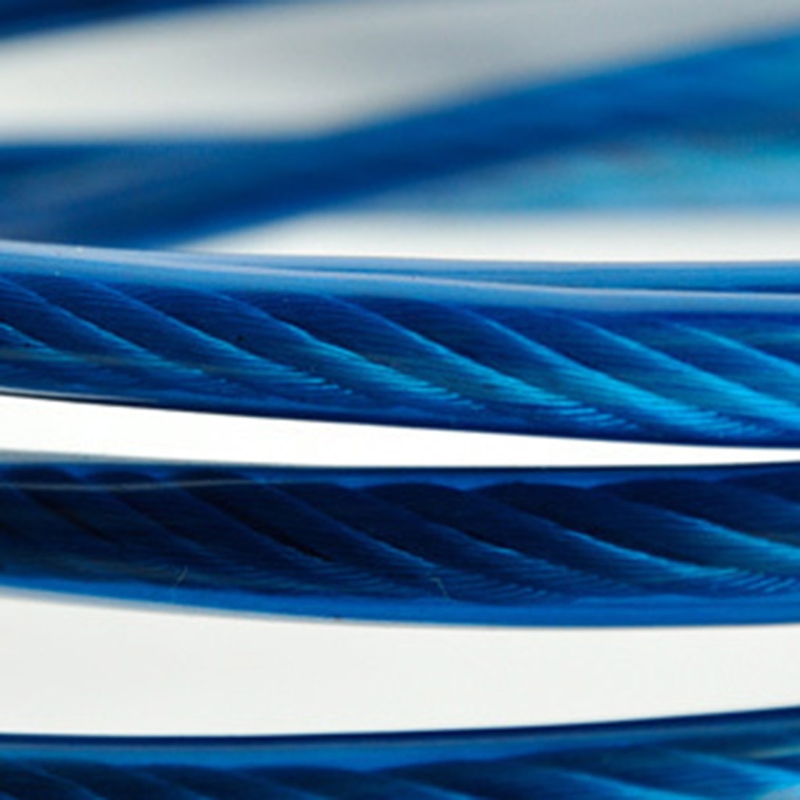 Эта веревка обернута сильным Синим ПВХ как внешний защитный слой, хорошо защищает внутренний стальной канат и безопасность для переноски и использования.