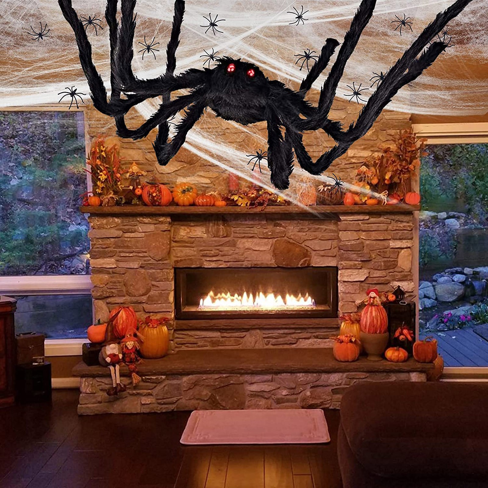 Halloween Spider Decorations,Spider Web for Indoor Outdoor Halloween Decor