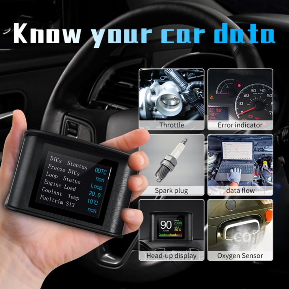Основные функции: Текущая скорость автомобиля, скорость двигателя, температура резервуара для воды, напряжение аккумулятора, Различные расходы топлива, время вождения, расстояние вождения, температура масла, соотношение воздух-топливо, давление на входе, давление турбо, поток данных по всему автомобилю.