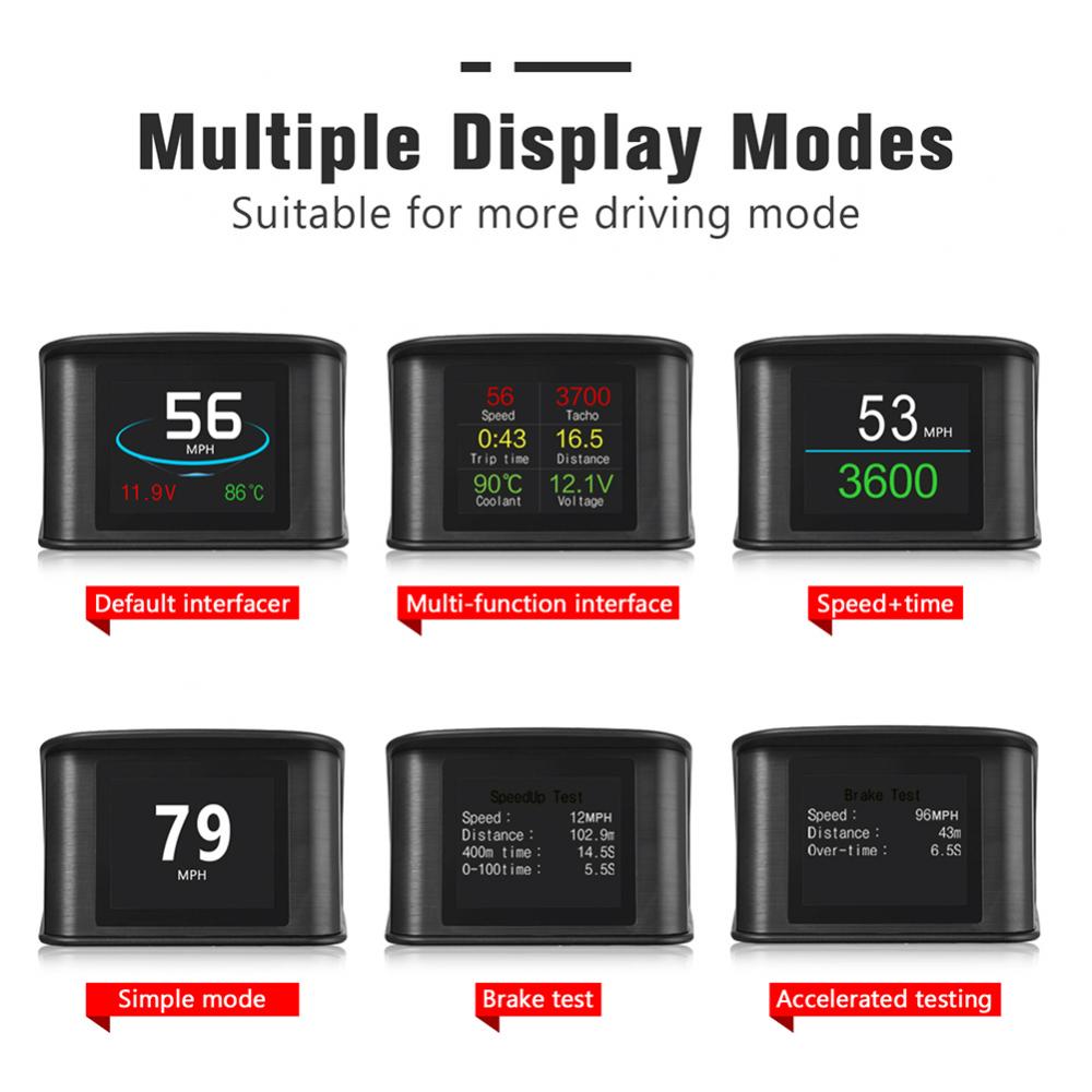 Автомобильный HUD OBD2 GPS смарт-дисплей контроль скорости 9 интерфейс цифровой измеритель турбо-тормоза тест OBD сканер