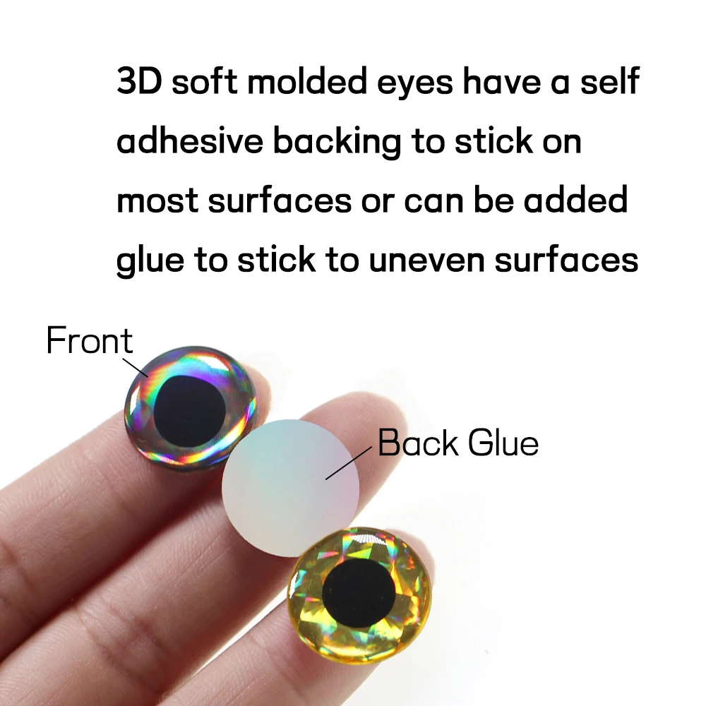 3D мягкие формованные Глаза имеют Самоклеющуюся подложку для приклеивания на большинство поверхностей или могут быть добавлены клей для приклеивания к неровным поверхностям