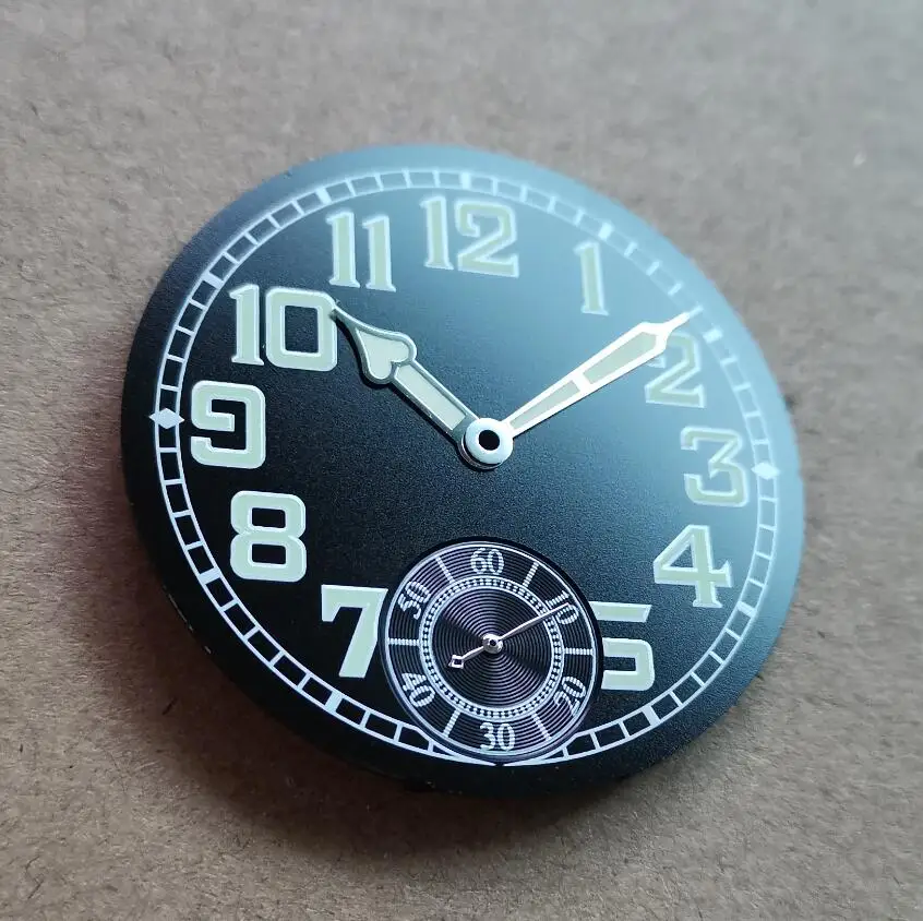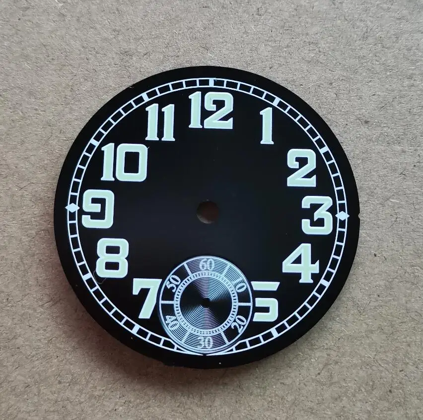 Диаметр циферблата составляет 35 мм, толщина циферблата составляет 0,5 мм, часовую стрелку и секундную стрелку шаг 10 мм. Секундную стрелку составляет 6 часов.