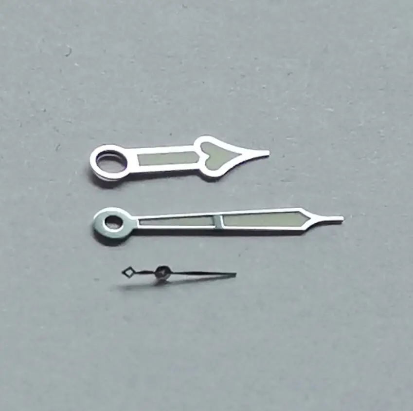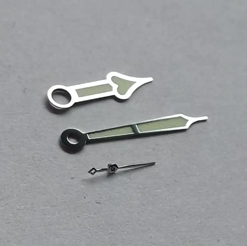От середины объема отверстия, часовая длина руки 10 мм, минутная длина руки 14 мм, длина второй руки 5 мм.