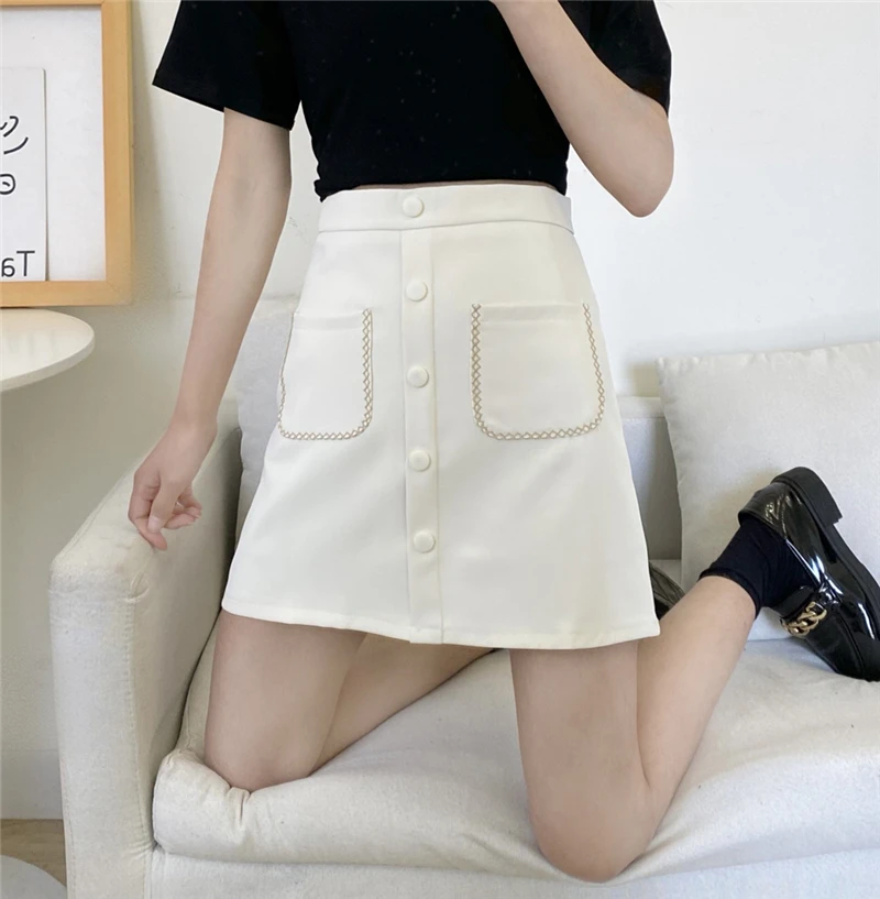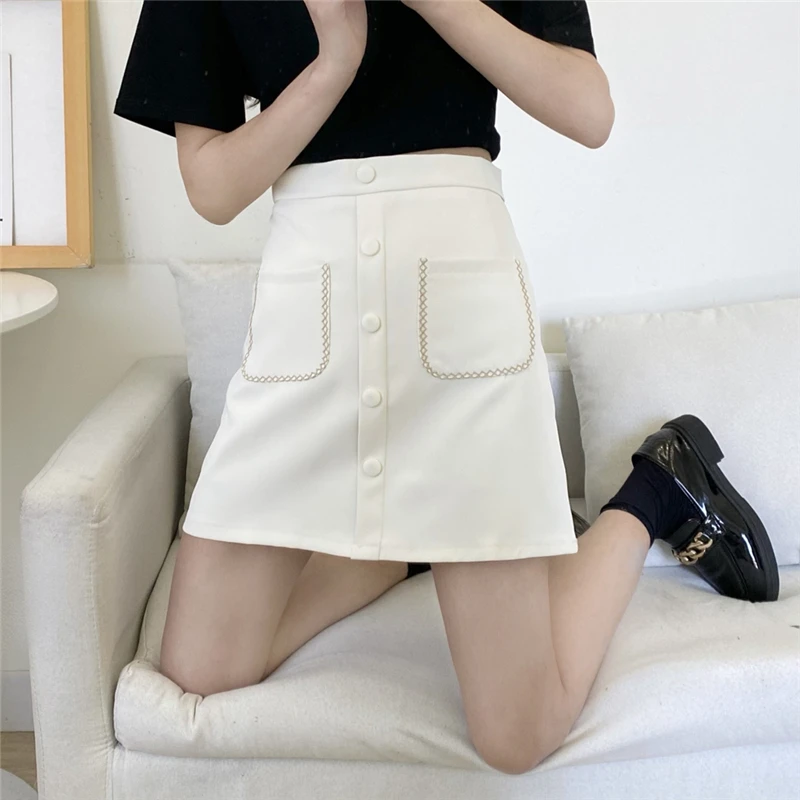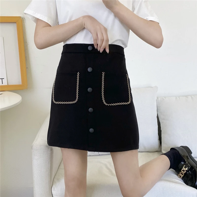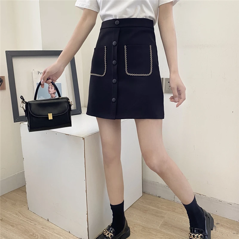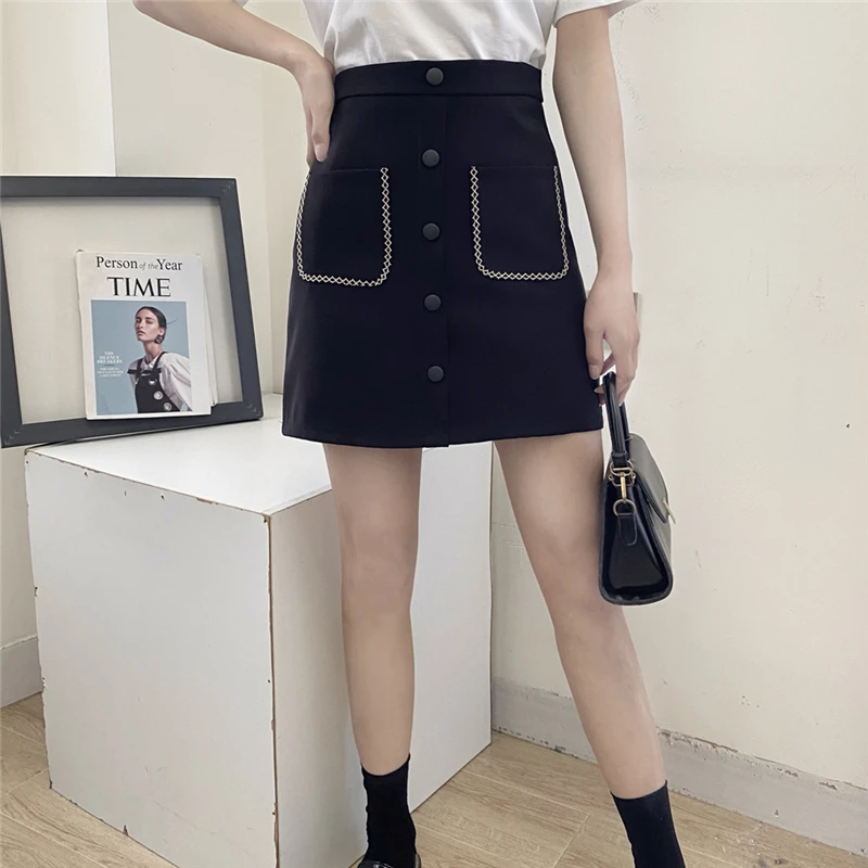 Корейское платье-карандаш, юбки для женщин, высокая талия, мини-юбка на молнии, винтажная Harajuku юбка с карманами, однобортная, весна-лето, тонкая, M043