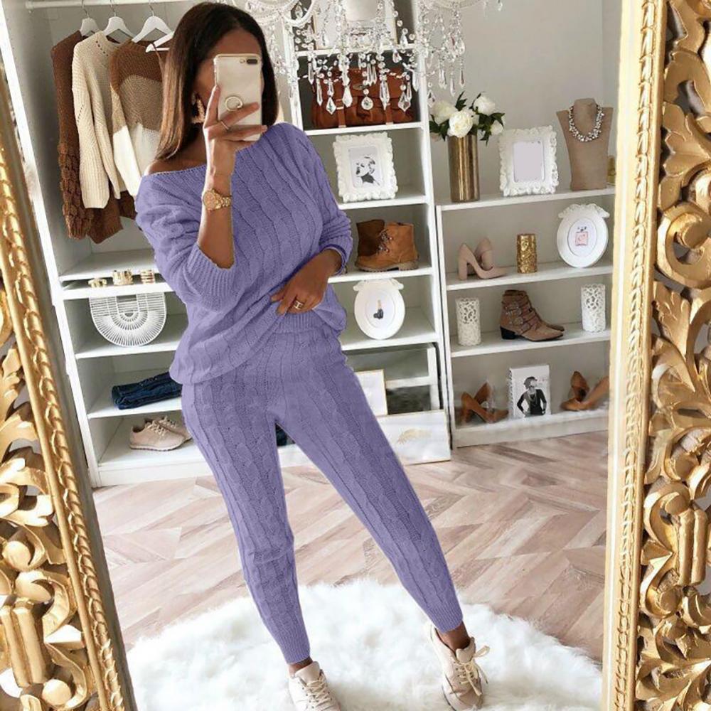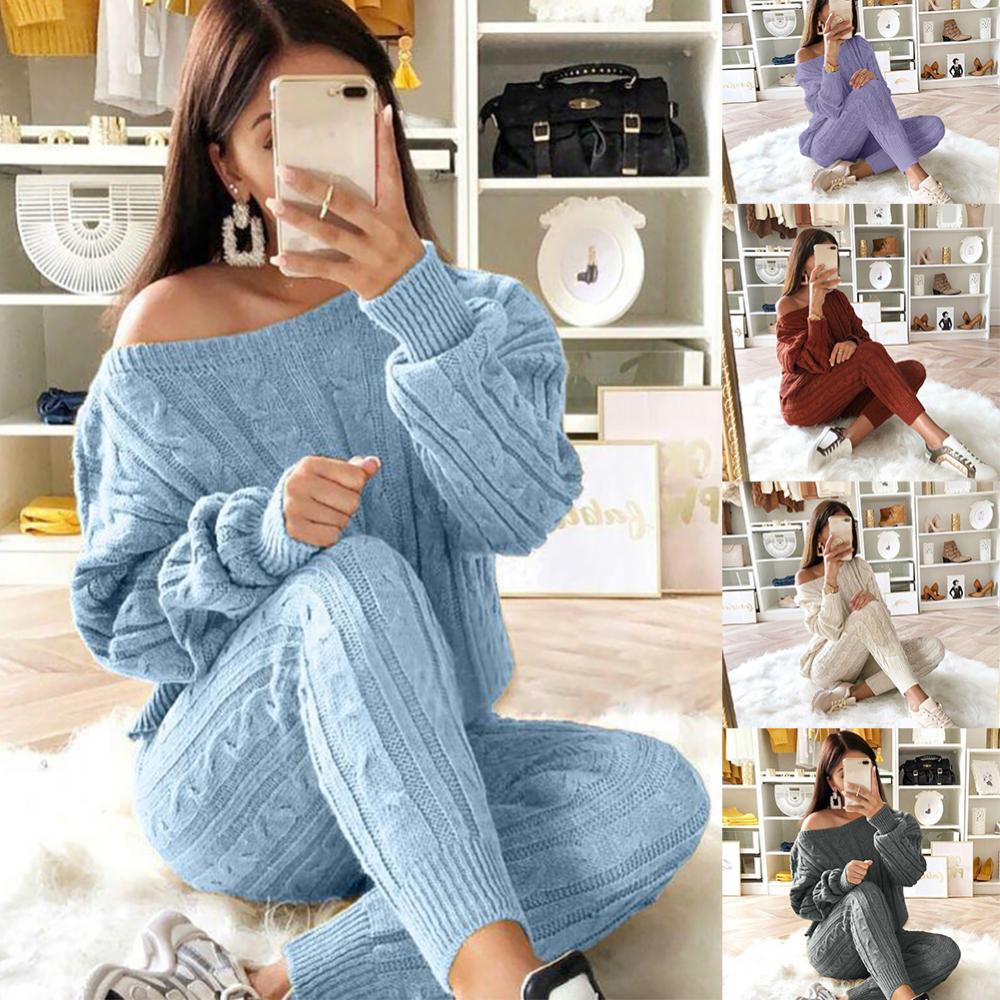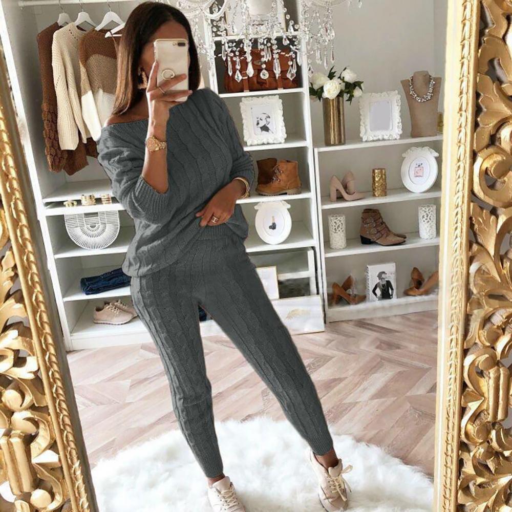 Женский свитер, вязаный комплект из 2 предметов, укороченный топ с длинными рукавами и длинные штаны, сексуальный свитер, Осень-зима 2020, комплект из двух предметов, наряды